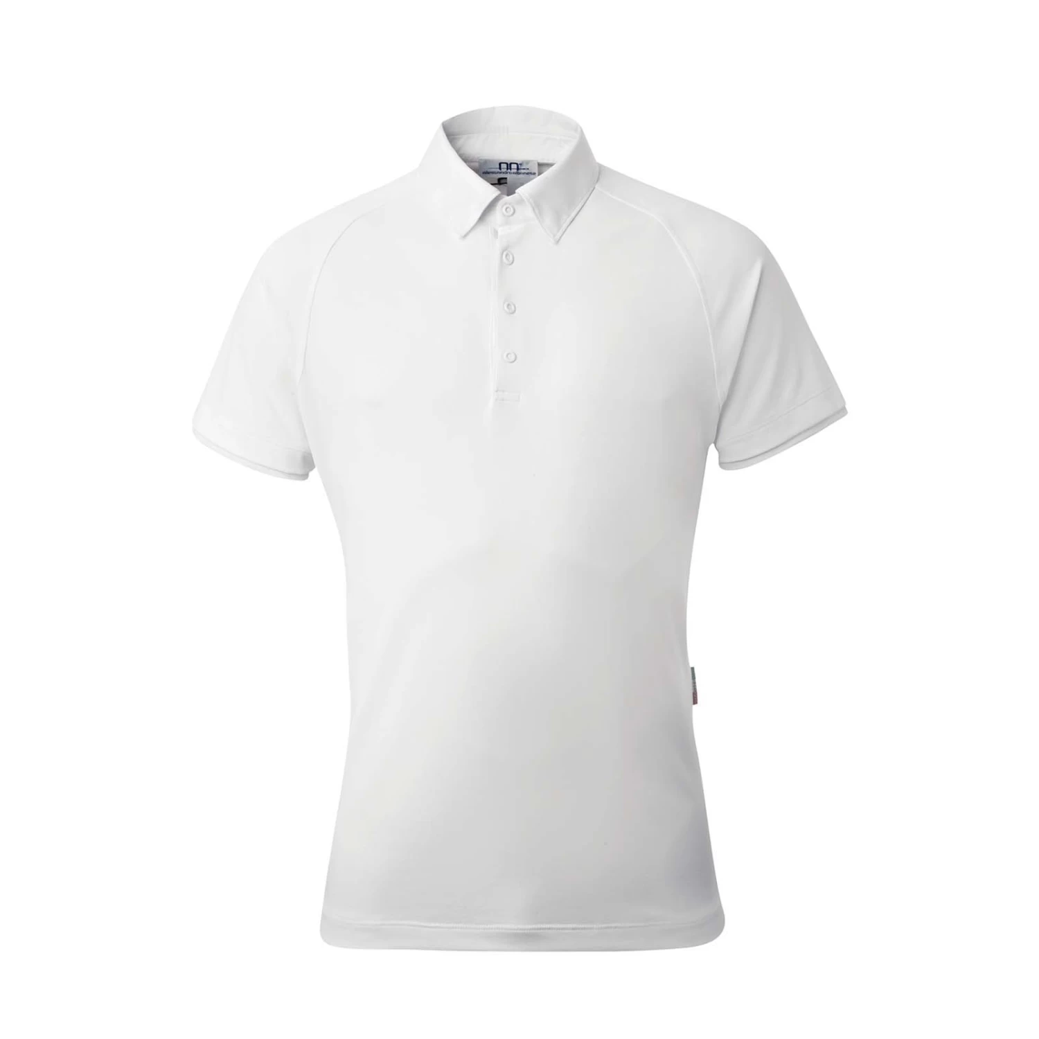 Technical mens competition top with button and tie collar. The technical stretch pique fabric provides a comfortable performance fit, and is extremely breathable.