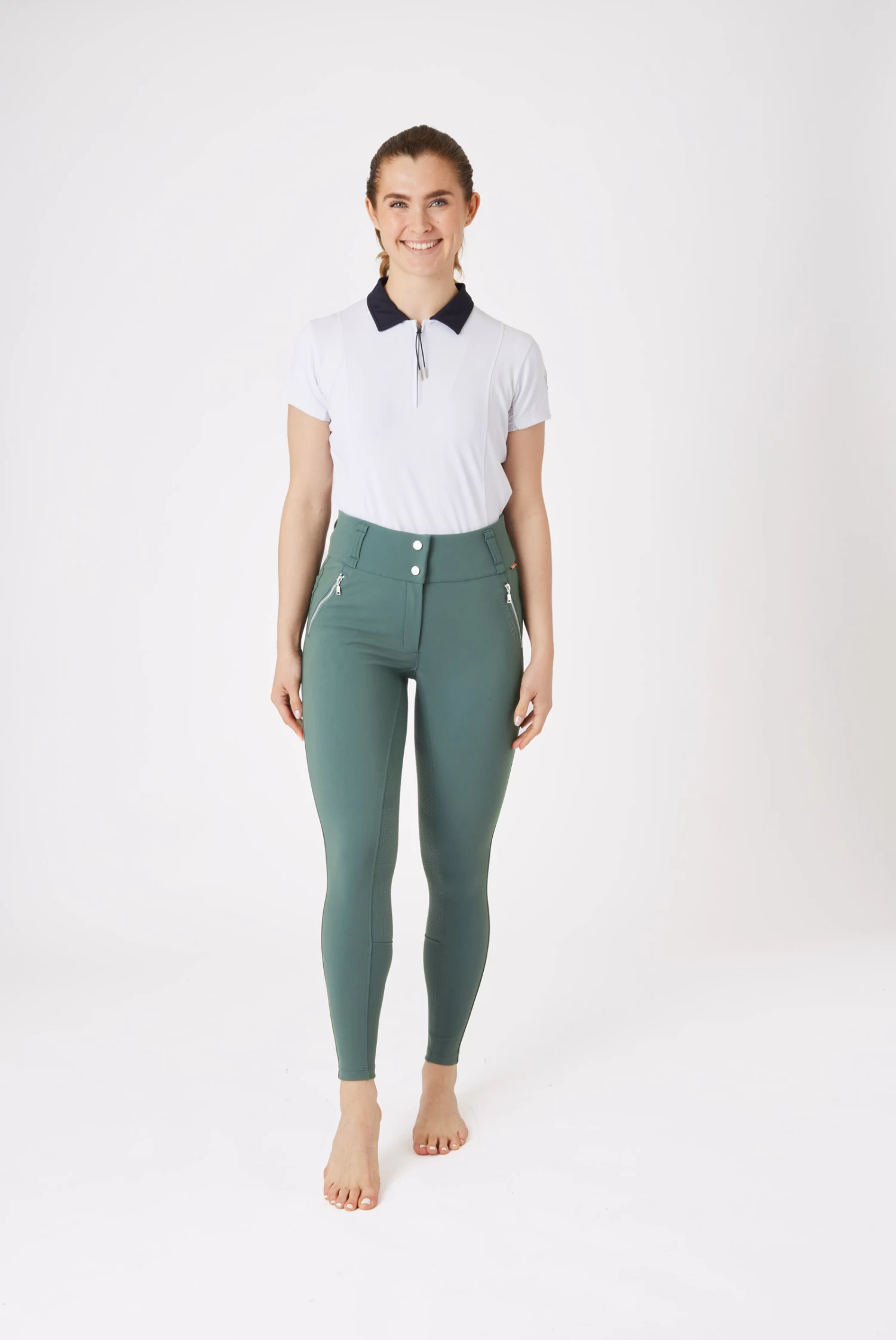 Made of a an all-season fabric with great stretch and a mid to high rise, these breeches are ultra comfortable. Want to take you phone with you? No problem, thanks to the deep pockets that fit even larger phone models just fine. For a touch of style fake pockets have been added on the backside. The silicone full grip, mostly prefered by dressage riders, provides a good hold in the saddle.