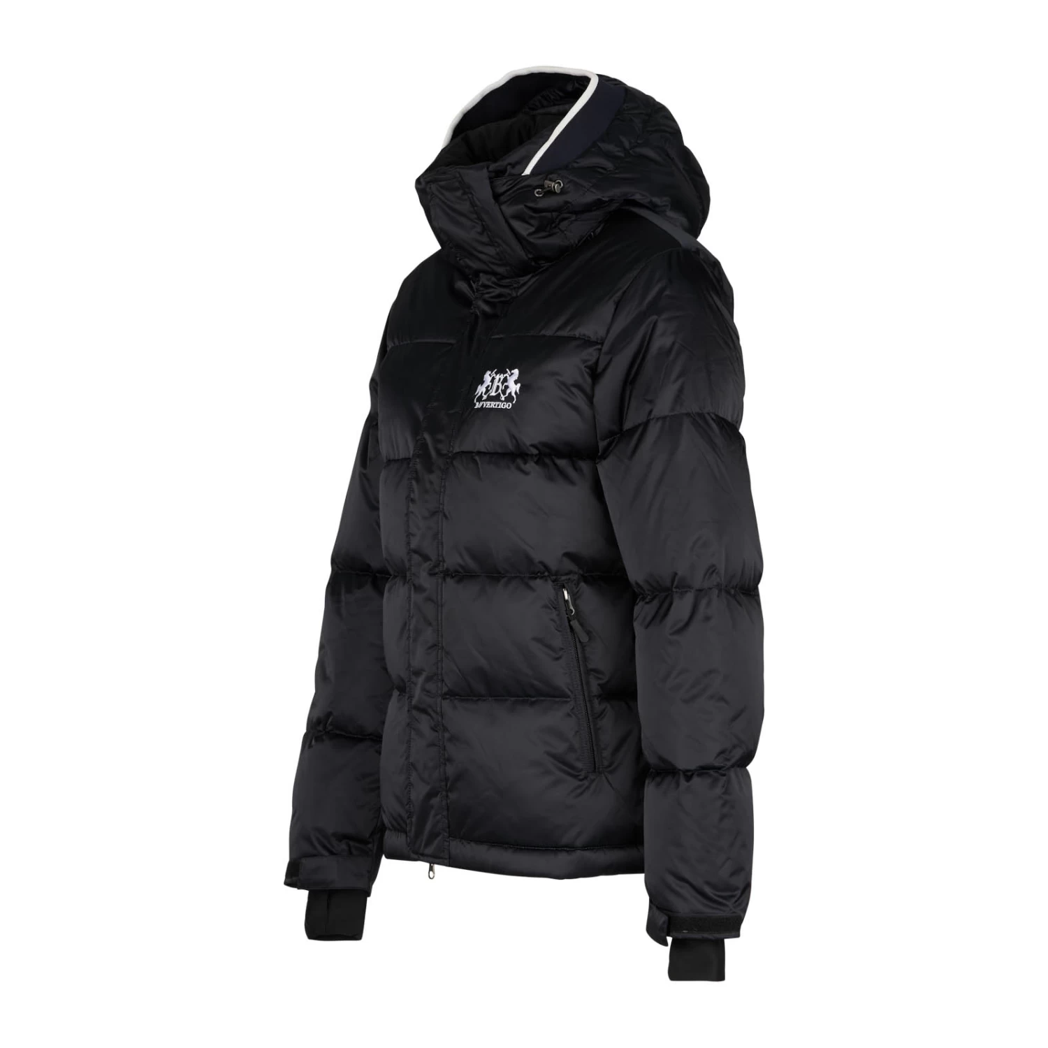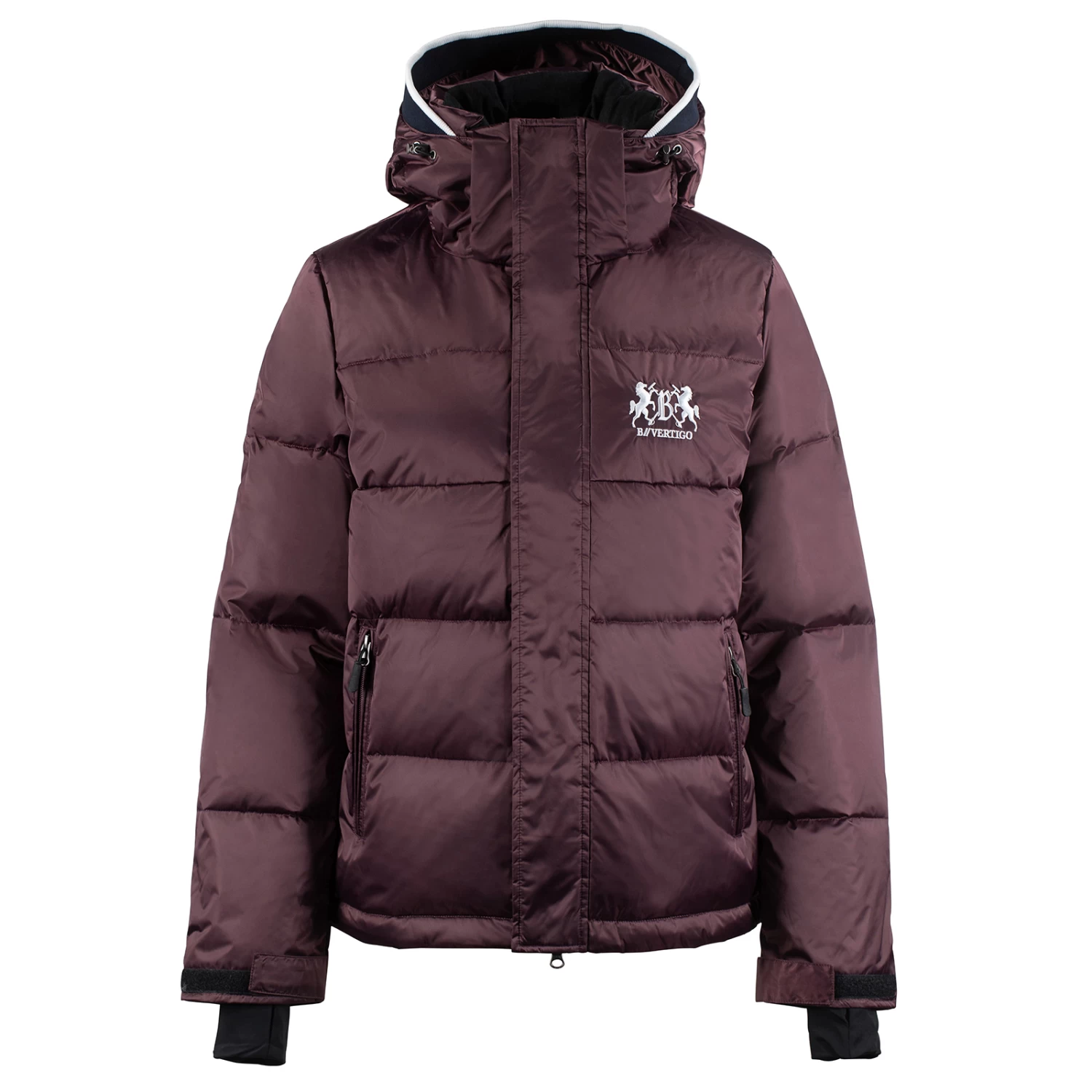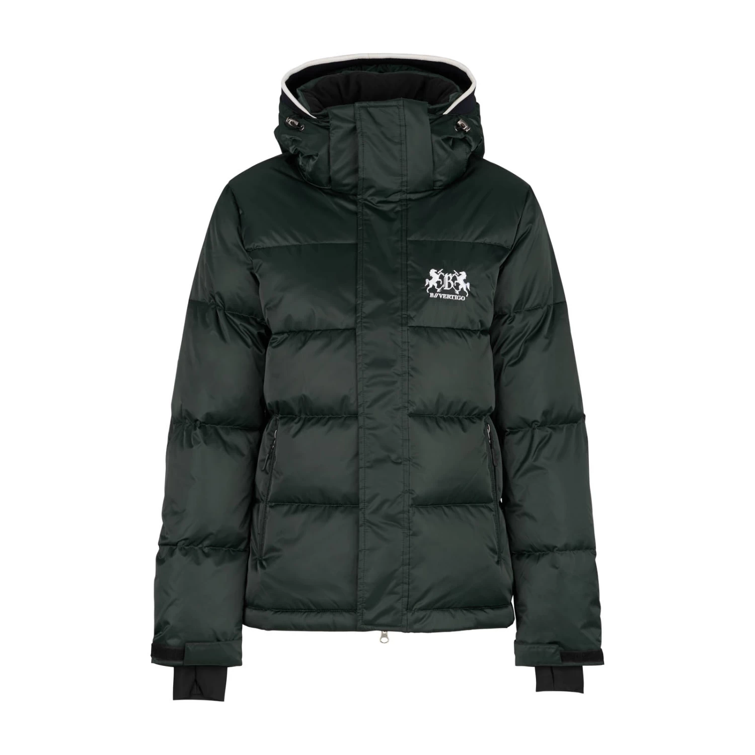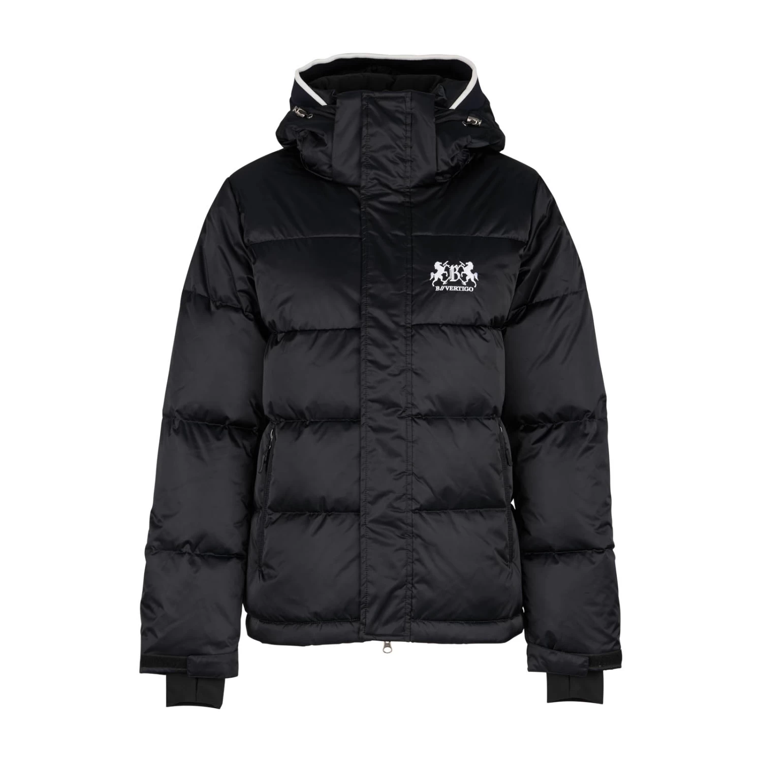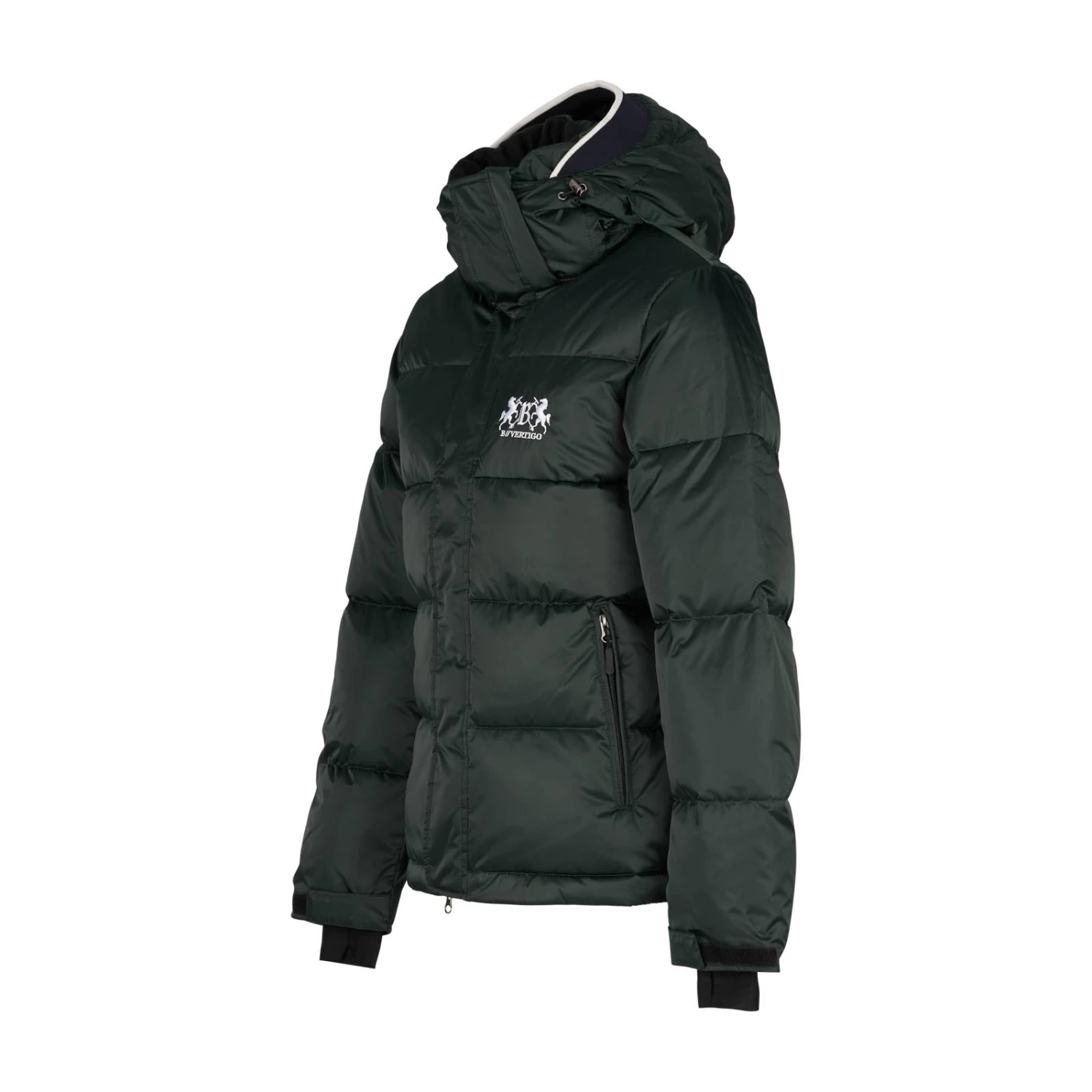 B Vertigo brings you another high quality and super attractive coat, made with shimmery, easy clean shell fabric. Feather down padding is extremely warm but also breathable to maintain your optimum body temperature. This jacket is suitable for many different uses – wear whilst riding, while doing jobs at the yard or simply casually. A windproof outer fabric boosts the insulation performance. The hood not only protects your face from the wind but features a stylish rib trim for an added chic touch. The 2-way zip allows the wearer to sit comfortably in the saddle, and pockets with zips keep possessions safe whilst riding.