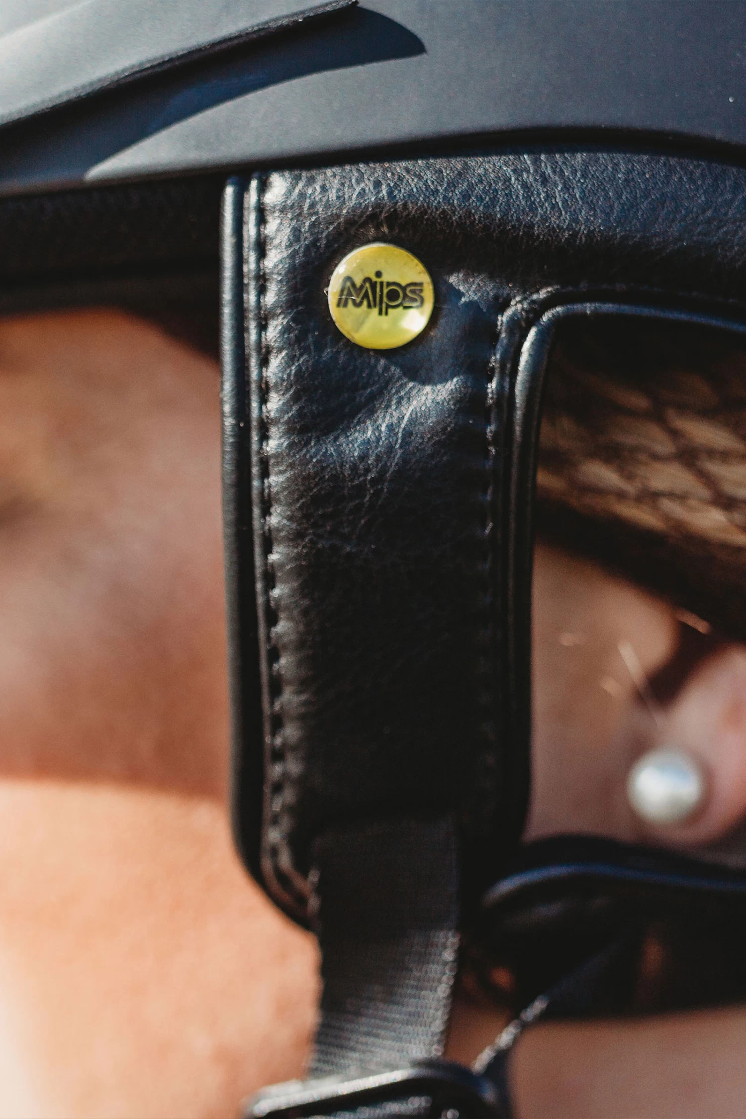 The riding helmet features the innovative MIPS two-layer system, in which the helmet layers can move independently of each other. The smooth outer shell is easy-care and dirt-repellent. Due to the improved fit, the head is optimally enclosed. An adjustment wheel ensures the perfect fit. This helmet is not BSI Kitemarked.
