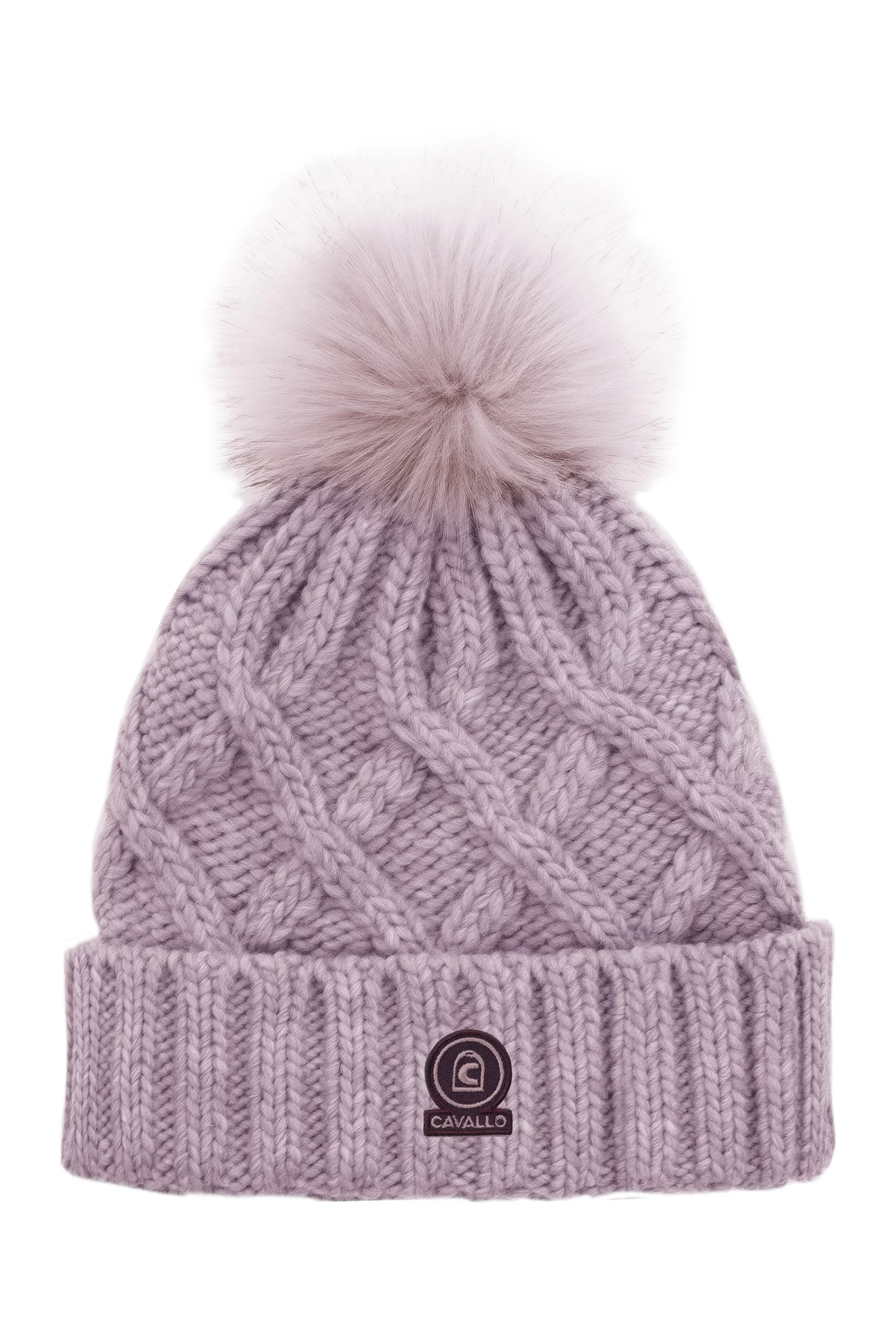 With cable knit design in diamond pattern and tonal faux fur pom-pom. Inside completely lined with soft fleece. Small Cavallo woven label on the front left brim.