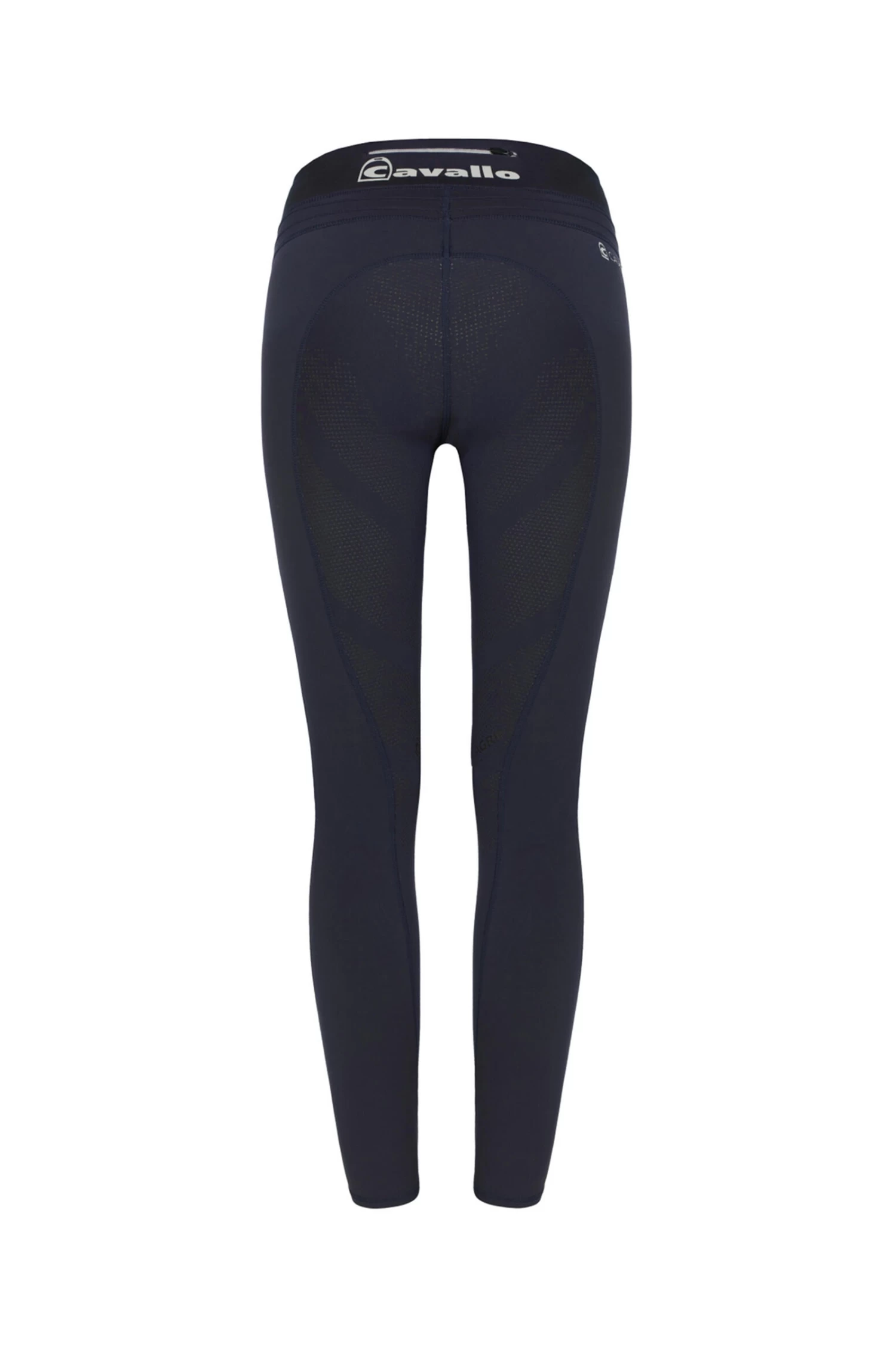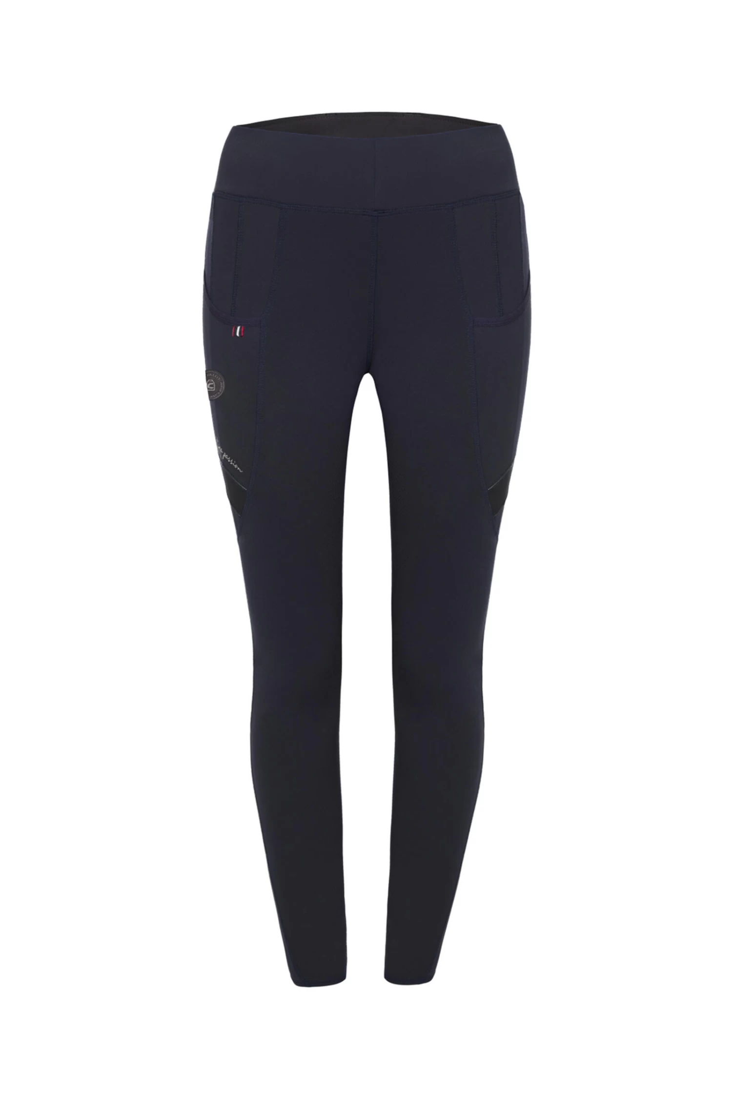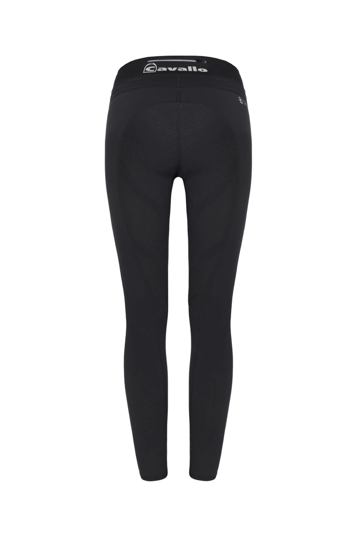 Cavallo LIN riding leggings has ergonomic waistband, two mobile pockets, with Cavallo emblem on left mobile pocket.