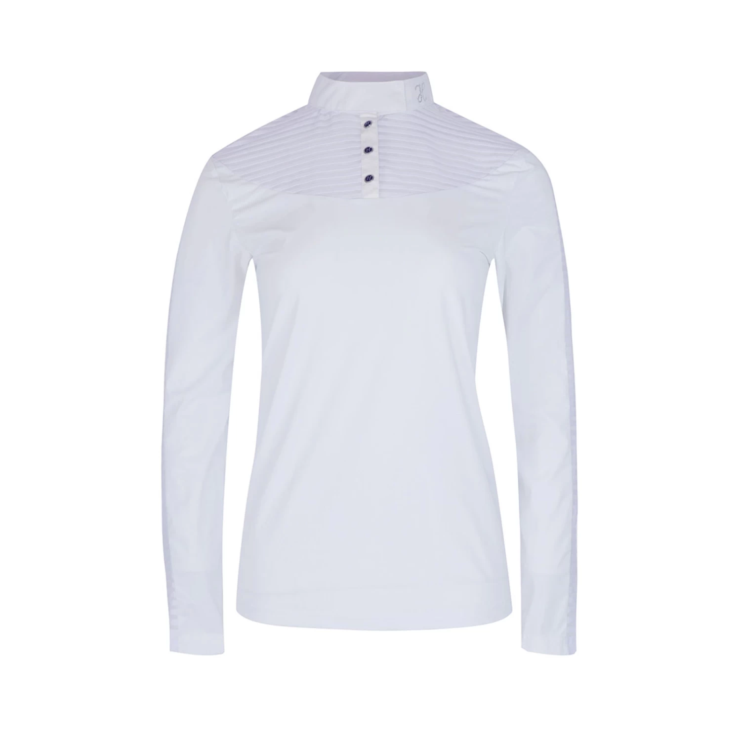 Popper buttons hidden on front and magnetic collar closure. Crystal logo on collar.