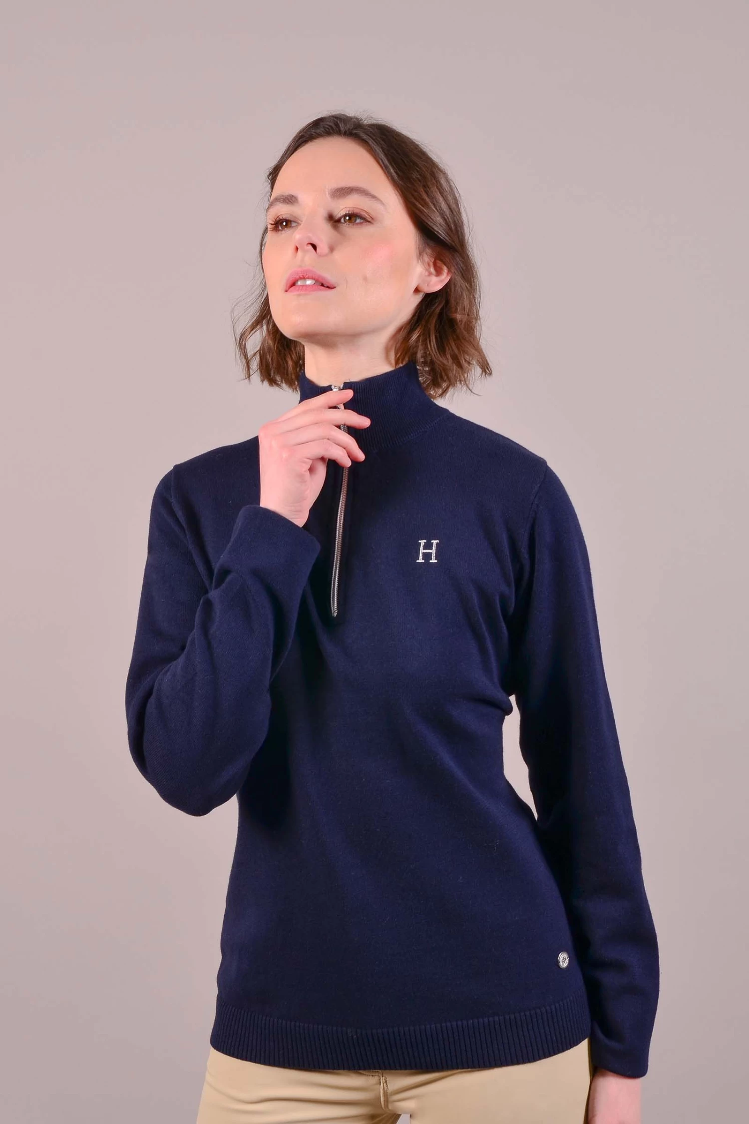 This high neck sweater is a must have from Harcour’s Spring/Summer 22 collection. The embroidered silver logo and the Harcour signature are the Harcour Touch. It can be worn on horseback or in town.