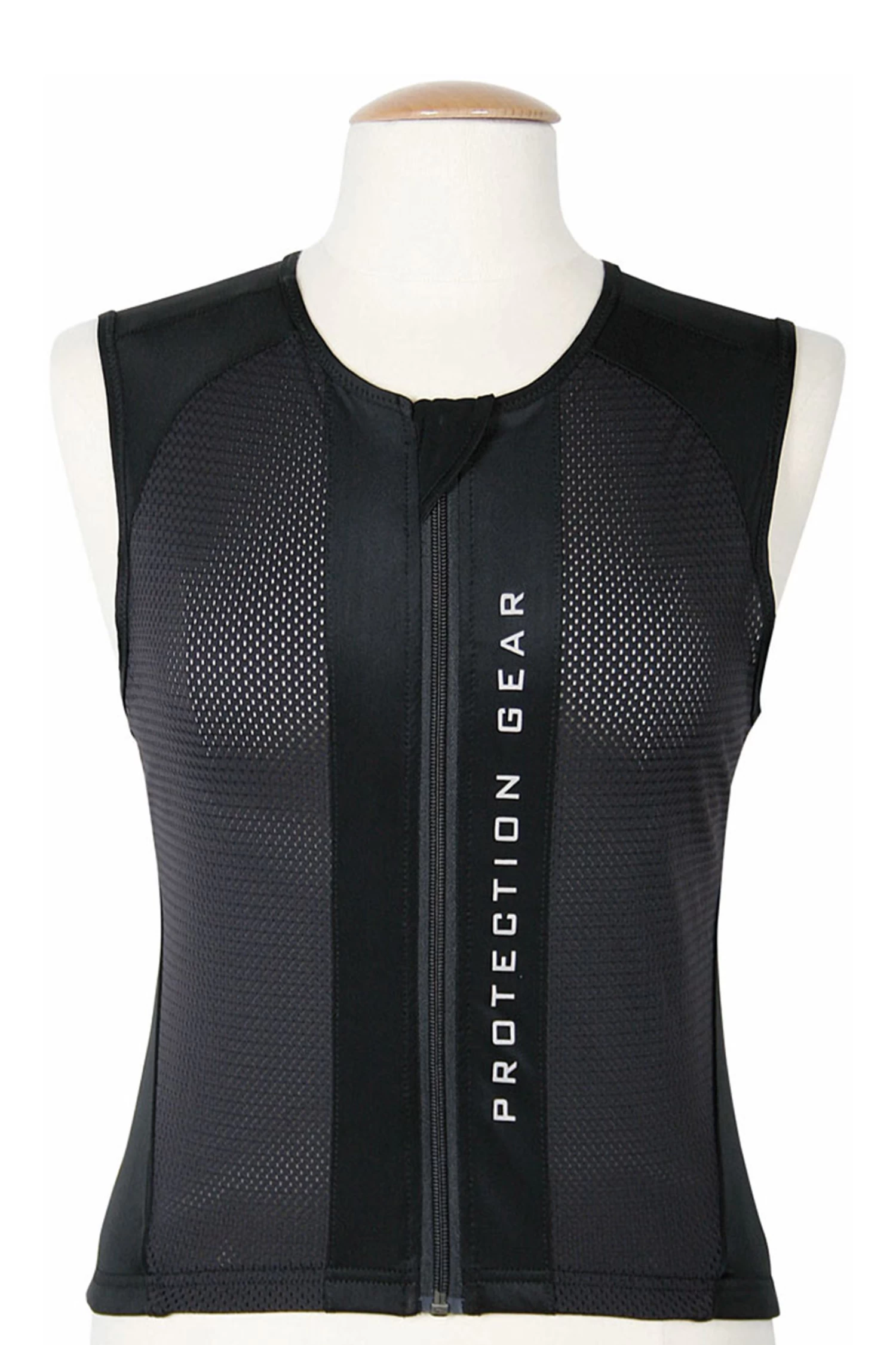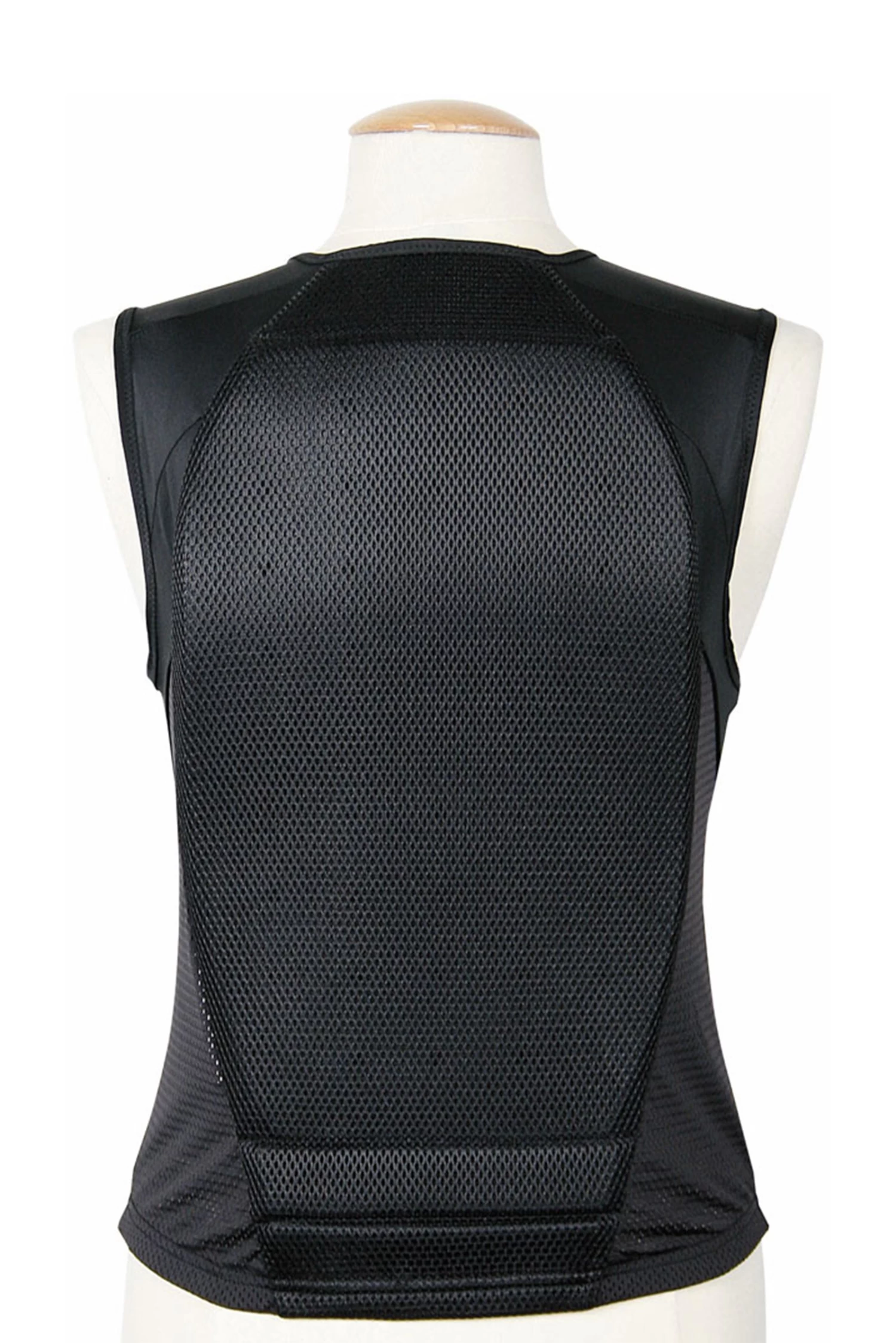 Clothing. Because the back protector is fitted in a vest this model also lends itself to be. Example, worn over a