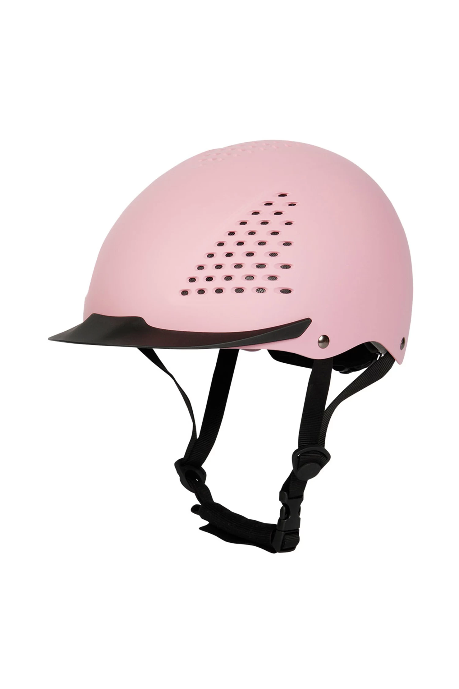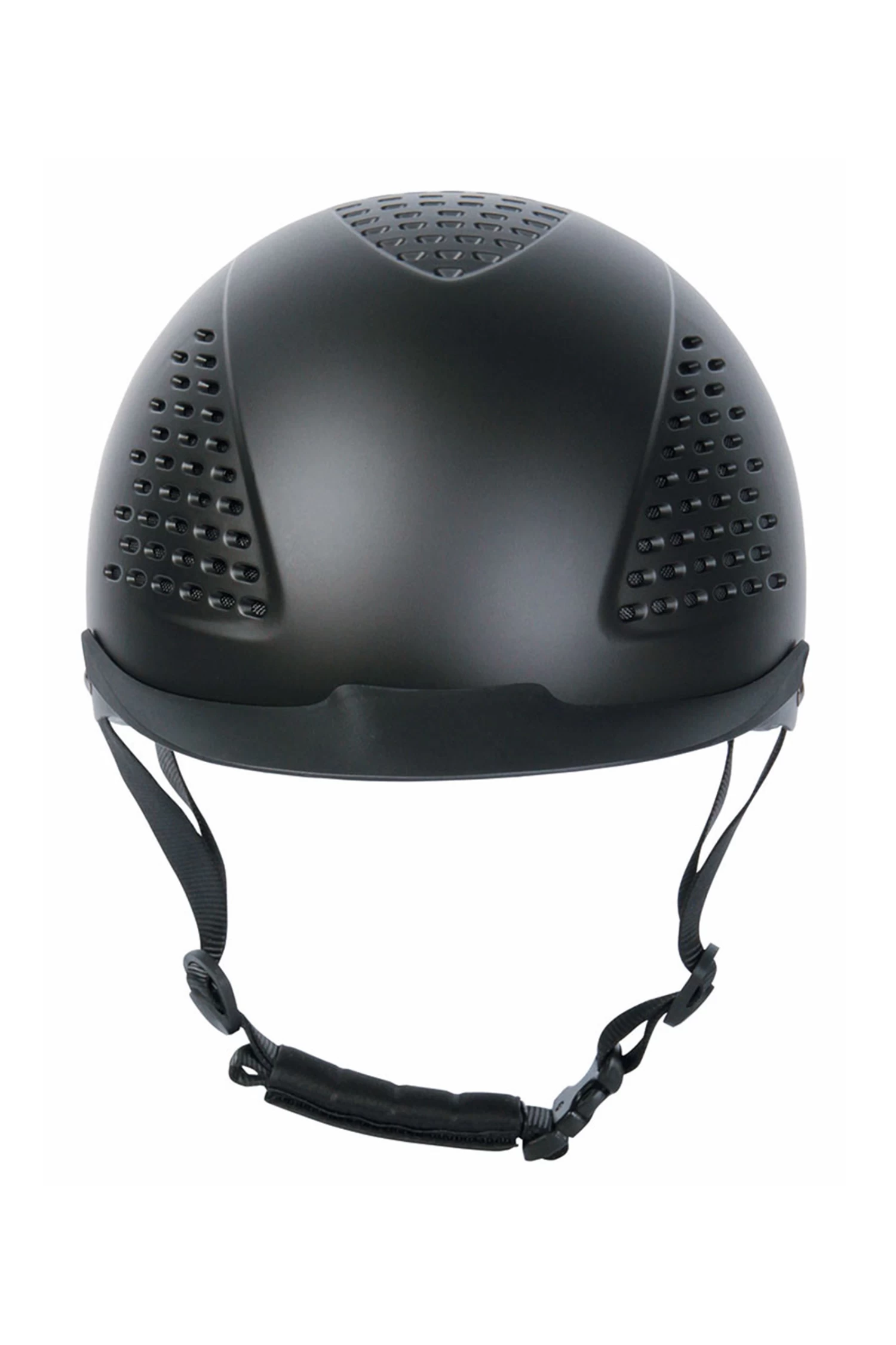 Lightweight riding helmet. Complies with standard CE VG1 01.040 2014-12. Easy to adjust by twisting the button. Also features several vents.