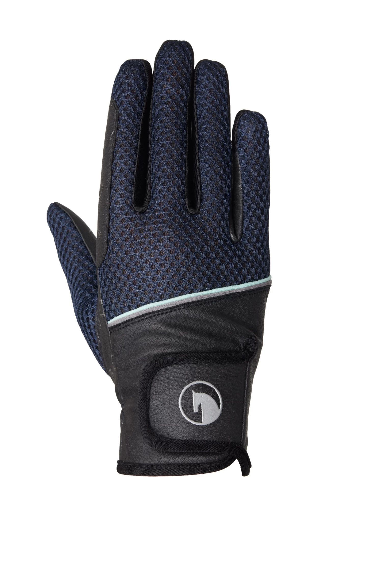 The mesh backhand fabric of the Horze Alani Summer Riding Gloves makes this pair of glove super comfortable to wear. The material is breathable for more comfort during summer rides. The palm features the typical serino fabric that provides good grip on the reins. A shiny silver logo print on the wrist closure tops of the timeless design.