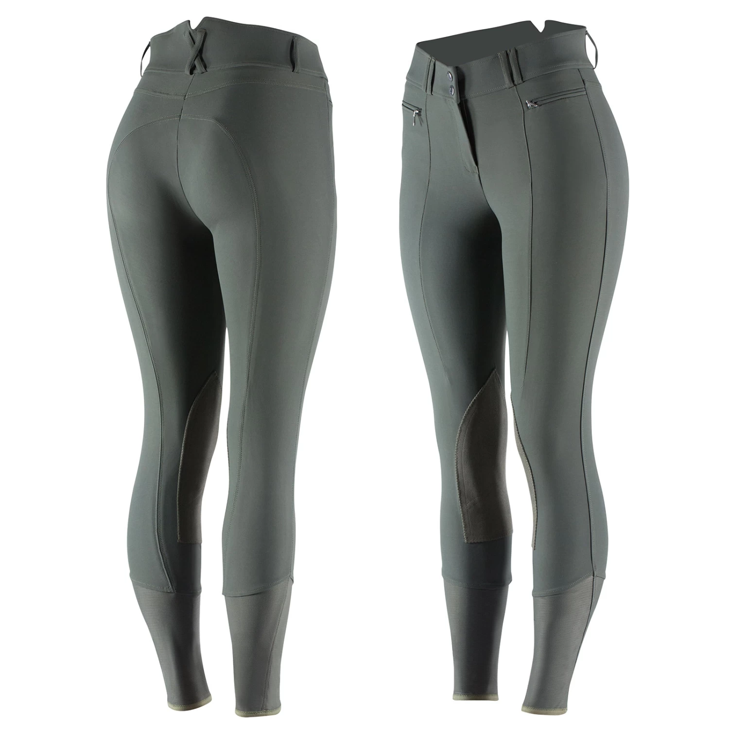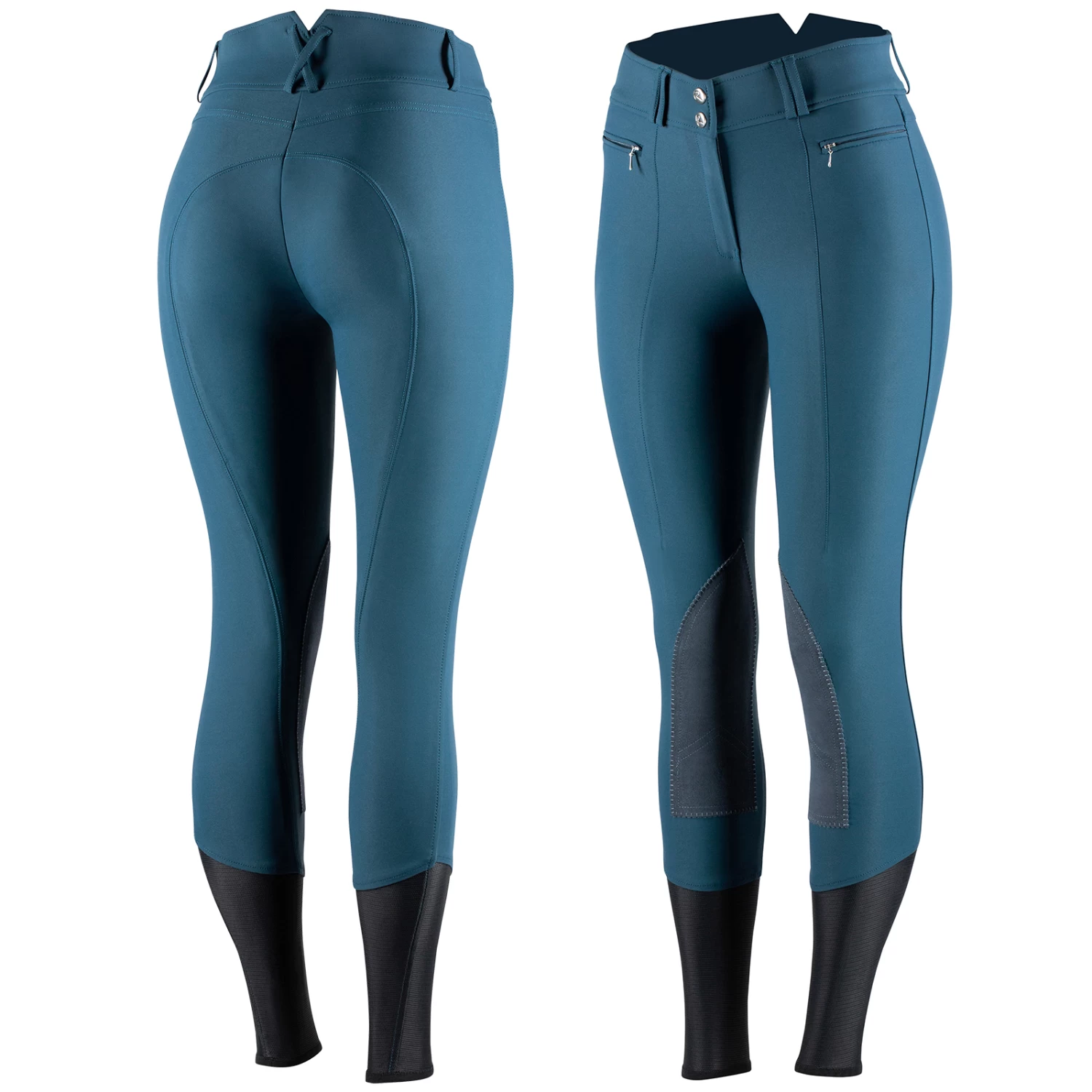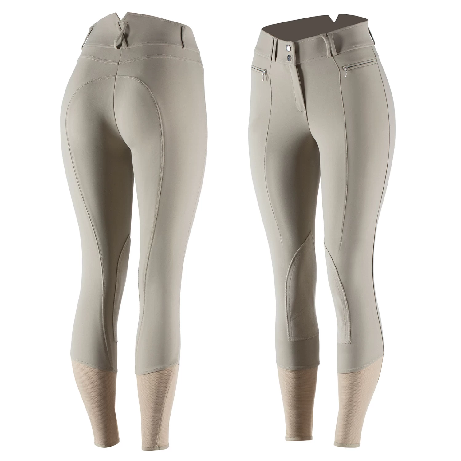 Lightweight breeches with a synthetic leather knee patch are the perfect choice for hot summer days. These breeches have a slimming effect and a high waist to help you maintain your correct position with ease. The mesh fabric at the leg is cool and breathable to stay comfortable under your boots. The high-quality polyamide/elastane blend ensures a snug fit, and smooth inner fabric adds extra comfort.