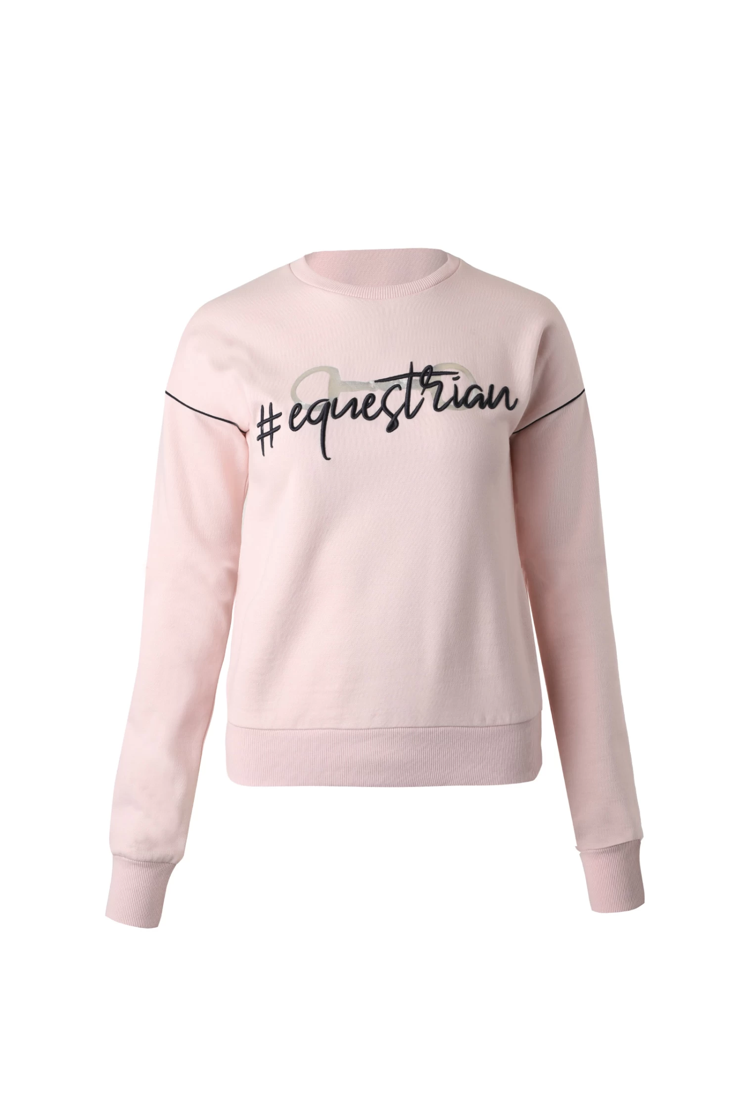 The soft cotton fabric and brushed inside provide a cozy feel, keeping young riders warm during cooler days. The bit embroidery and #equestrian detail on the chest add a touch of equestrian charm. With a modern shorter cut at the front (but not crop cut), this sweater offers a fashionable look without compromising coverage. Available in young rider sizes, it ensures a perfect fit for young equestrians.