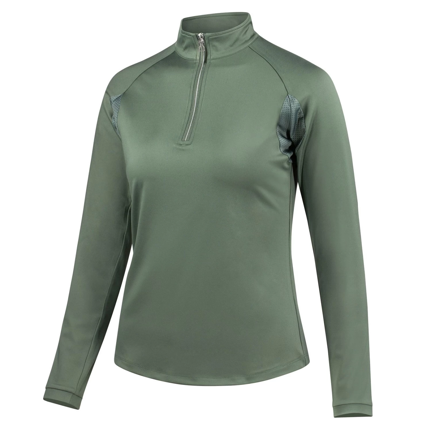The Horze Carolina Training Shirt is made from breathable fabric with extra mesh at the armpit to give perfect ventilation. Long arms give warmth while the functional material keeps you from overheating. The shirt closes with a shiny silver zipper.