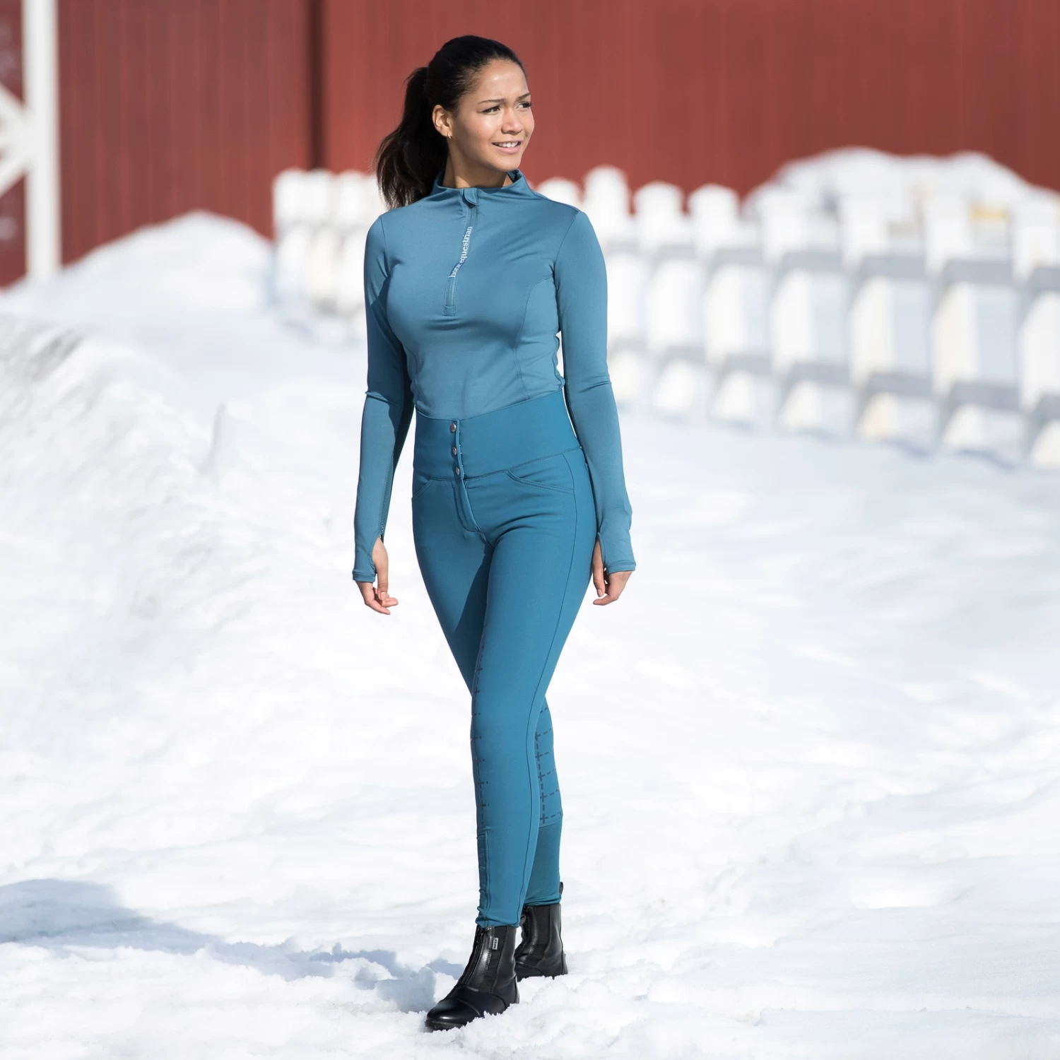 - Trendy women’s breeches in a special silicone checked pattern full seat which allows a good grip in the saddle