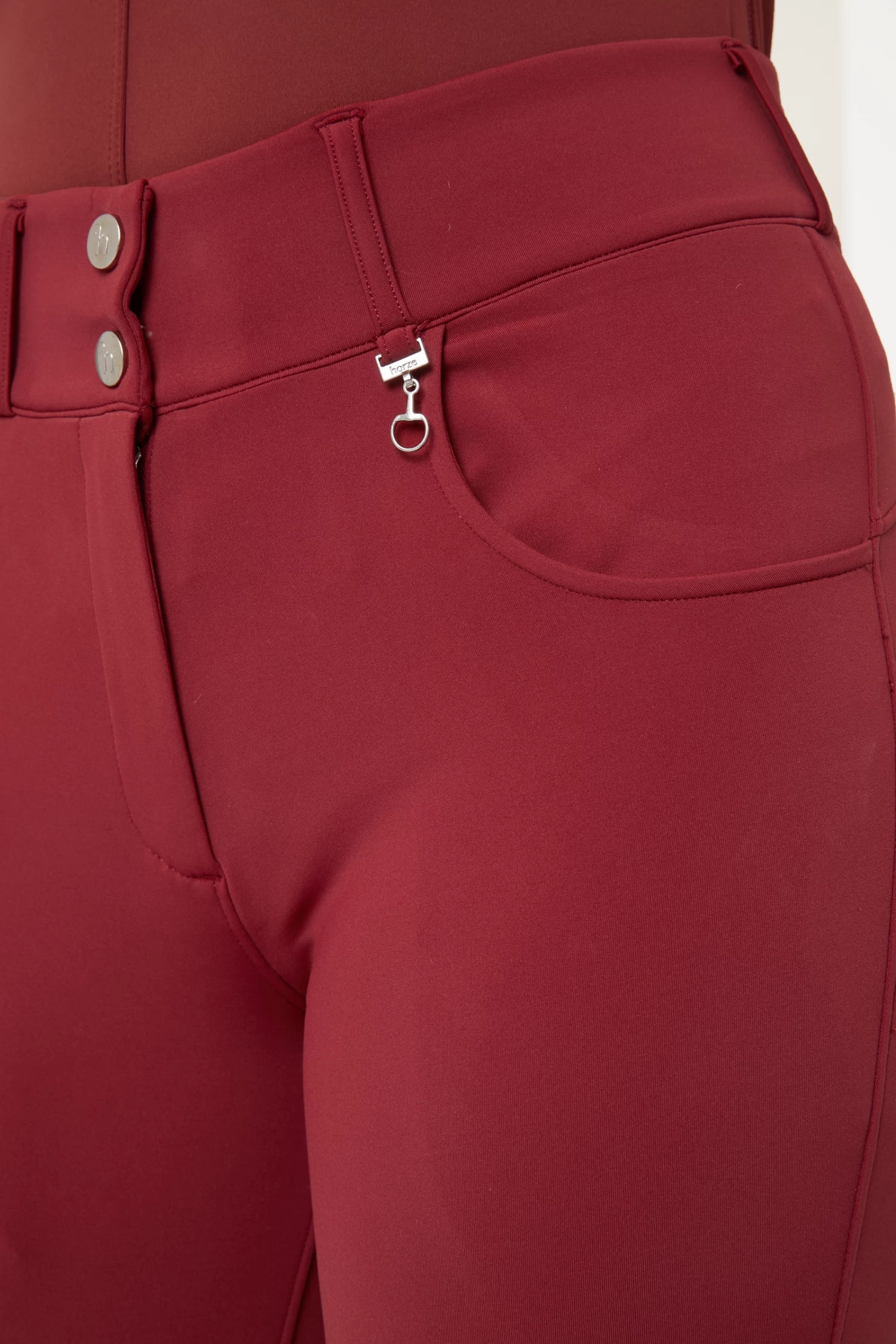 Our Horze Ingrid winter breeches are high waisted and elastic. The lining is super soft and warm. Water repellent qualities keep you comfortable. Two deep front pockets hold your phone. The silicone knee patch provides flexibility in the saddle. Also available as full seat version.