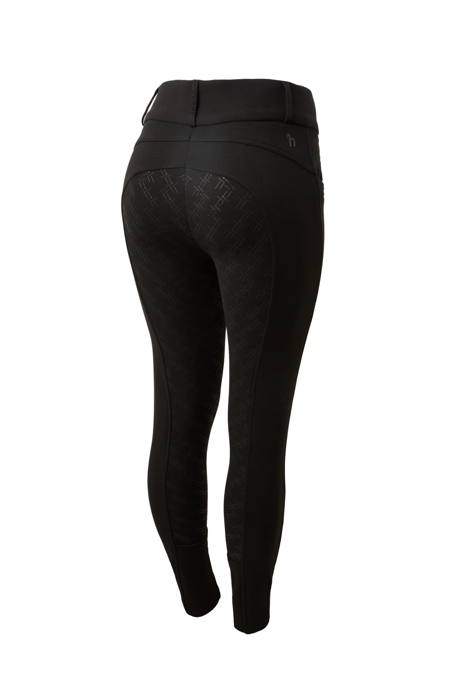 Horze is proud to introduce the Mia breeches, a price-friendly thermo breech option for the winter season. The functional fabric of the breeches offers weather protection, warmth, flexibility and comfort. Thermal qualities combined with water resistant fabric makes them ideal for colder seasons. The elastic waistband with strong belt loops and the elastic leg bottoms ensure a comfortable wearing experience. The full seat silicone print provides you with excellent support in the saddle. The front pockets of these cosy breeches feature nine small crystals each – this sprinkling of glitter is the perfect finishing touch to your outfit.