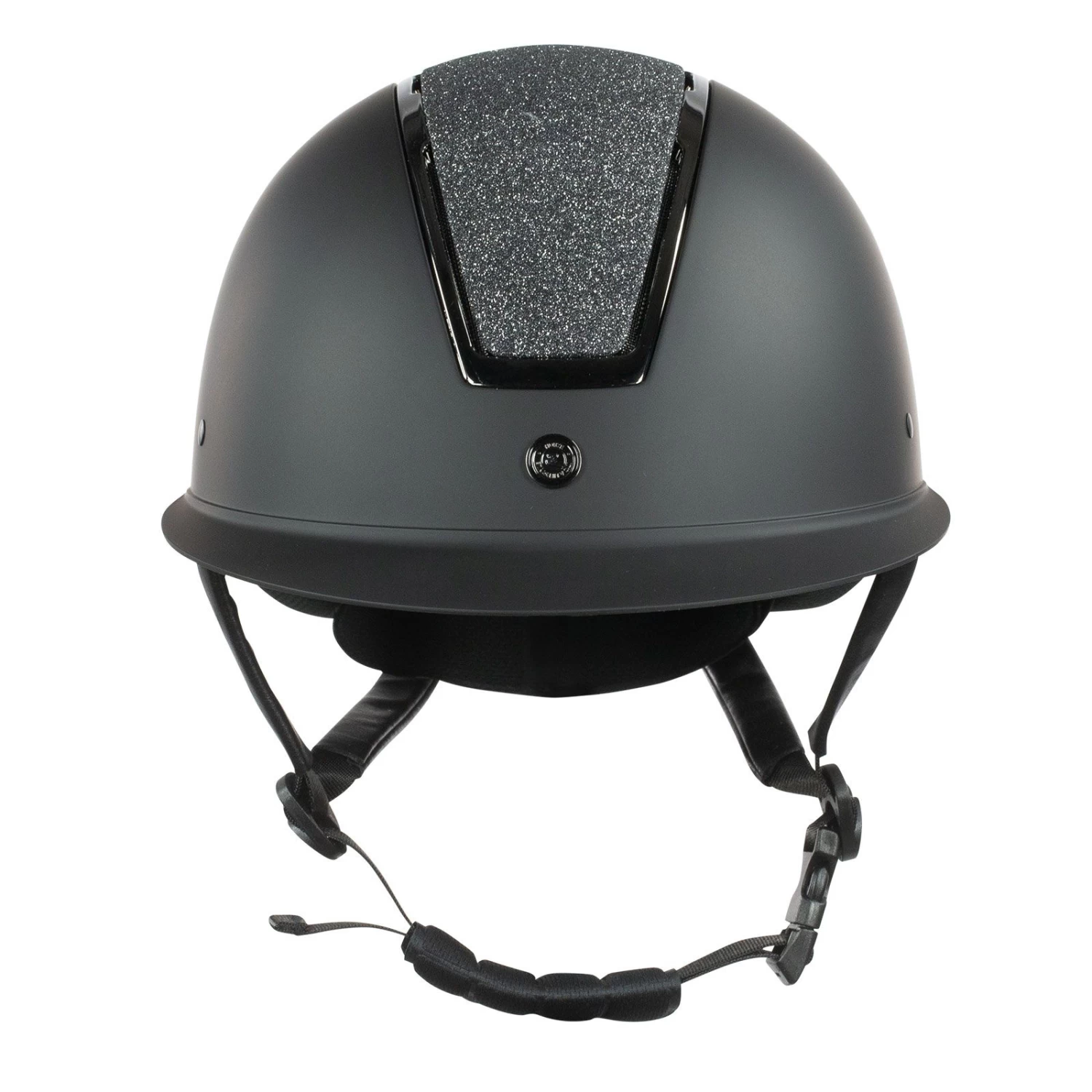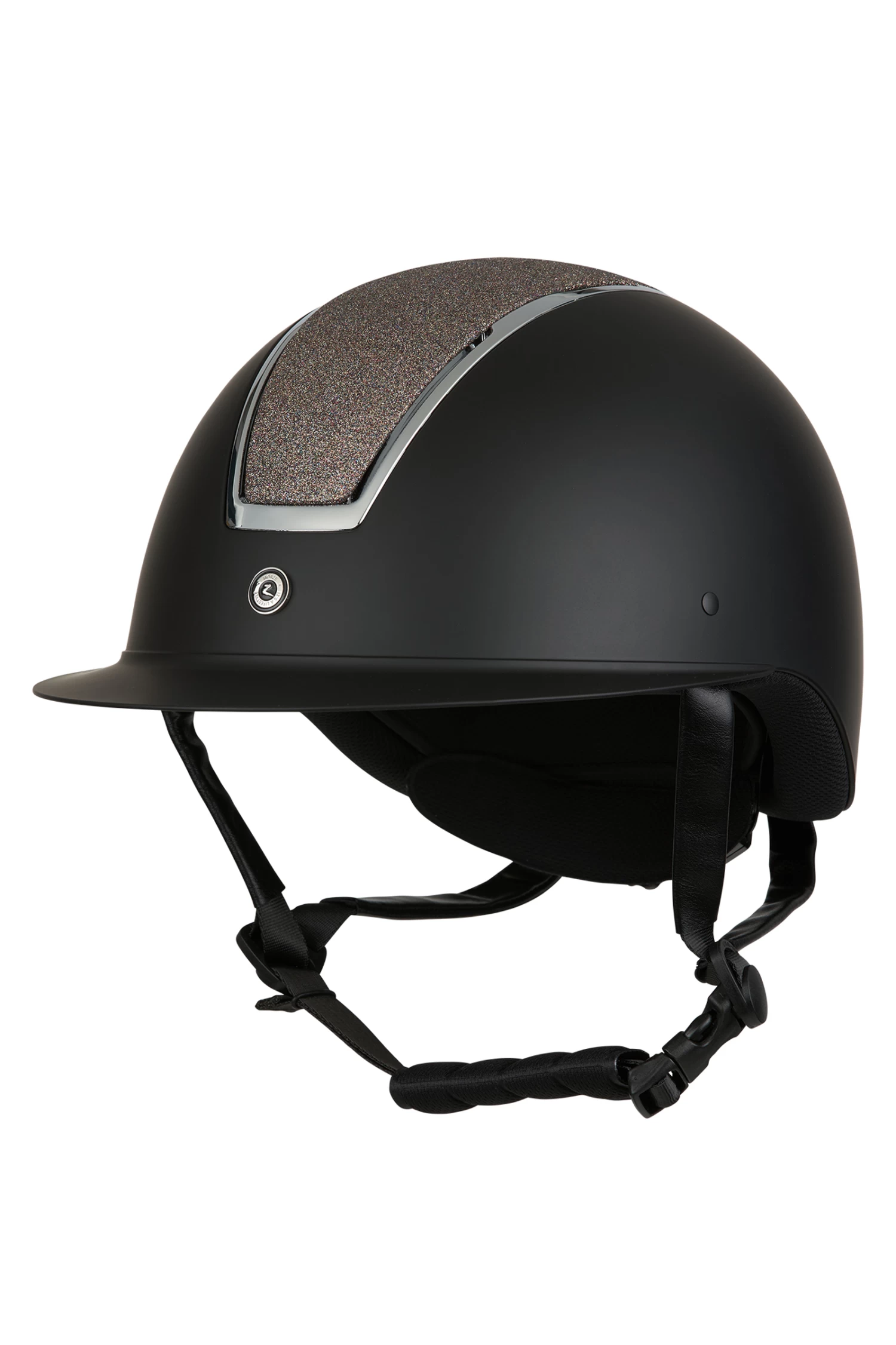 The Horze Monarch Helmet can withstand high impact, and ventilation slots offer comfort with plenty of air flow to keep your head cool. The shiny panels with glitter on the outer shell of the helmet add a touch of elegance to your riding outfit and come in a variety of stylish colours. The wide visor provides extra cover. The dial system allows you to adjust it for a perfect fit. Memory foam lining cradles your head in comfort while offering protection in the event of a fall. A flexible peak brim adds more safety. This helmet is not approved for BHS, BRC, British Eventing or The Pony Club.