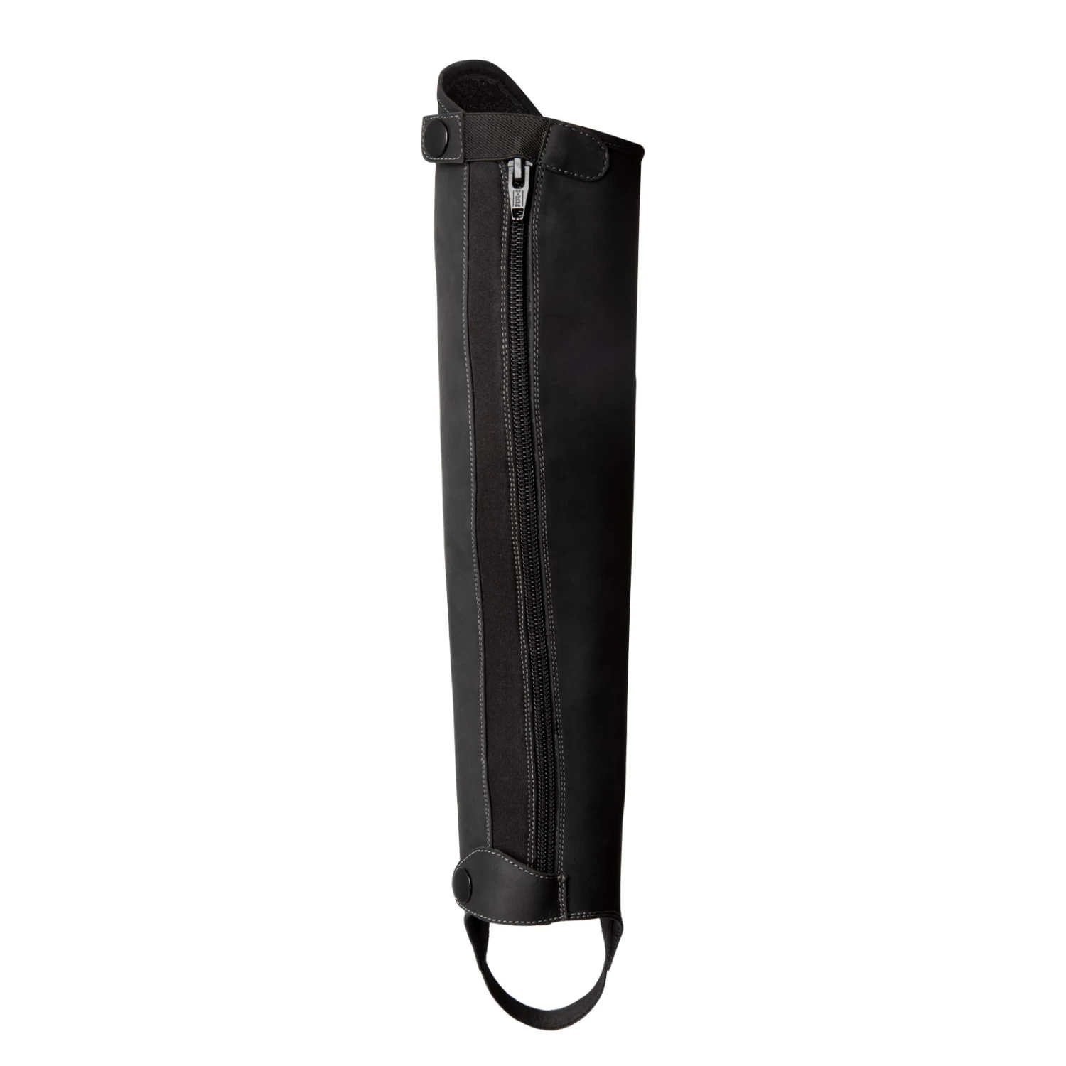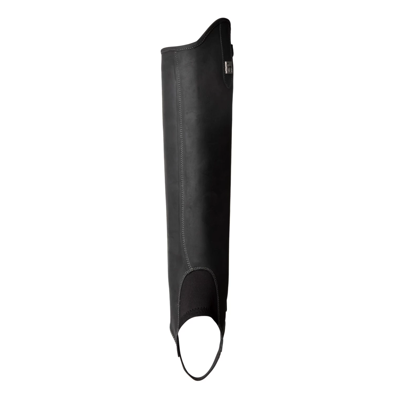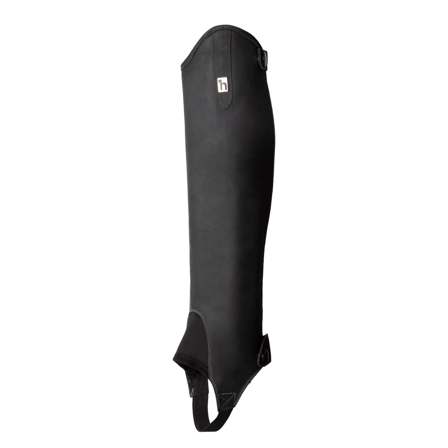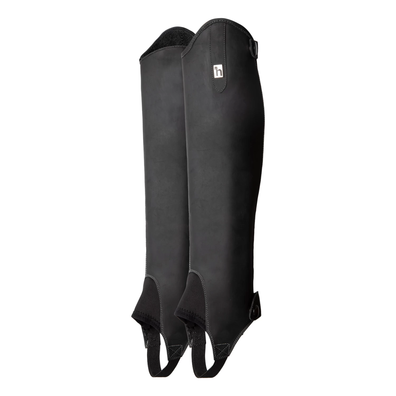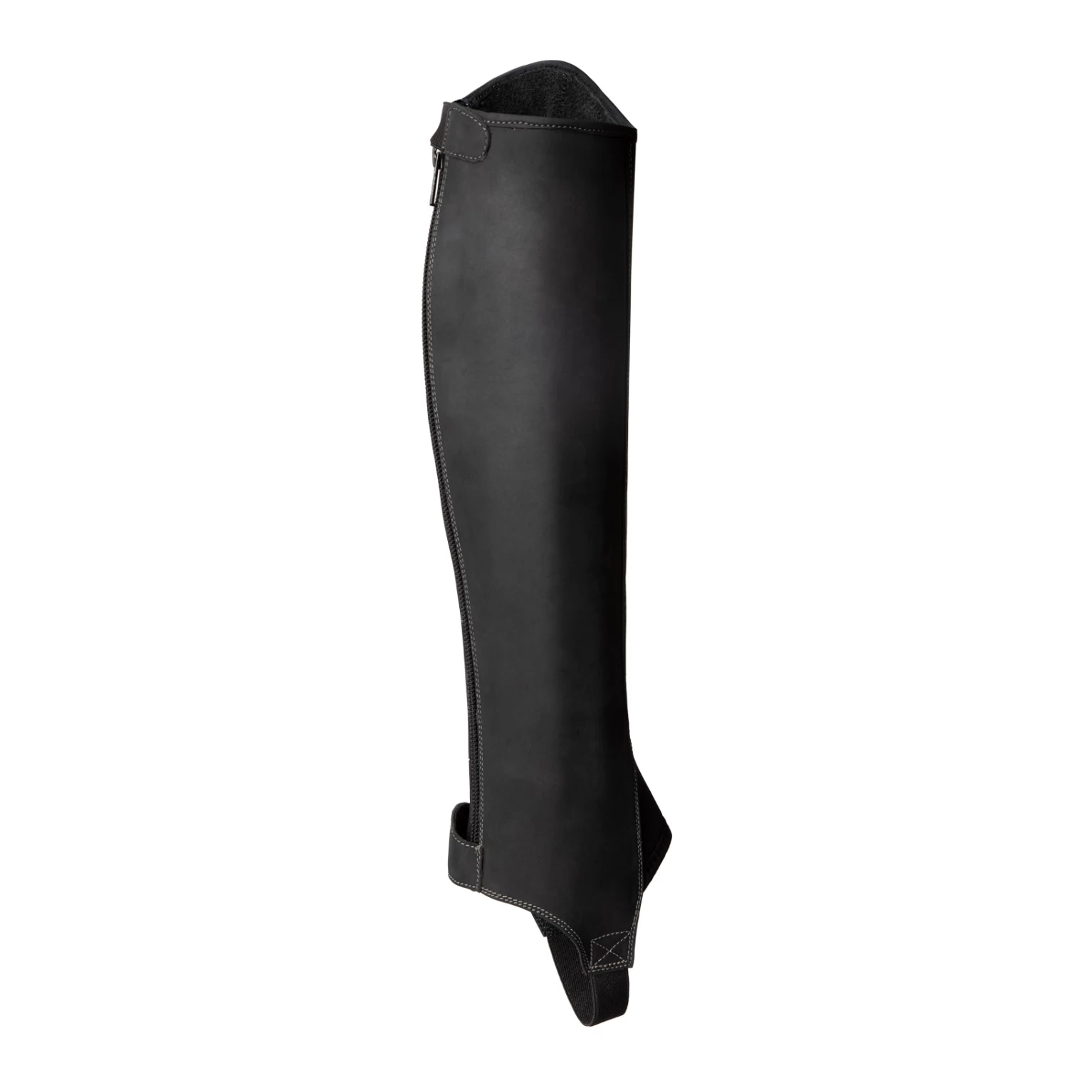 The Horze Ronda chaps easily turn your jodhpur boots into tall boots. The back zipper offers easy access, and is comfortable with elastic. Soft leather molds to your calf for the perfect fit. The foot strap keeps them in place.