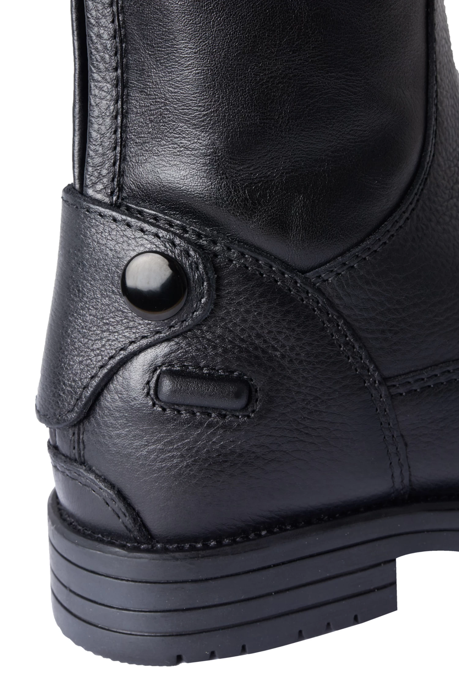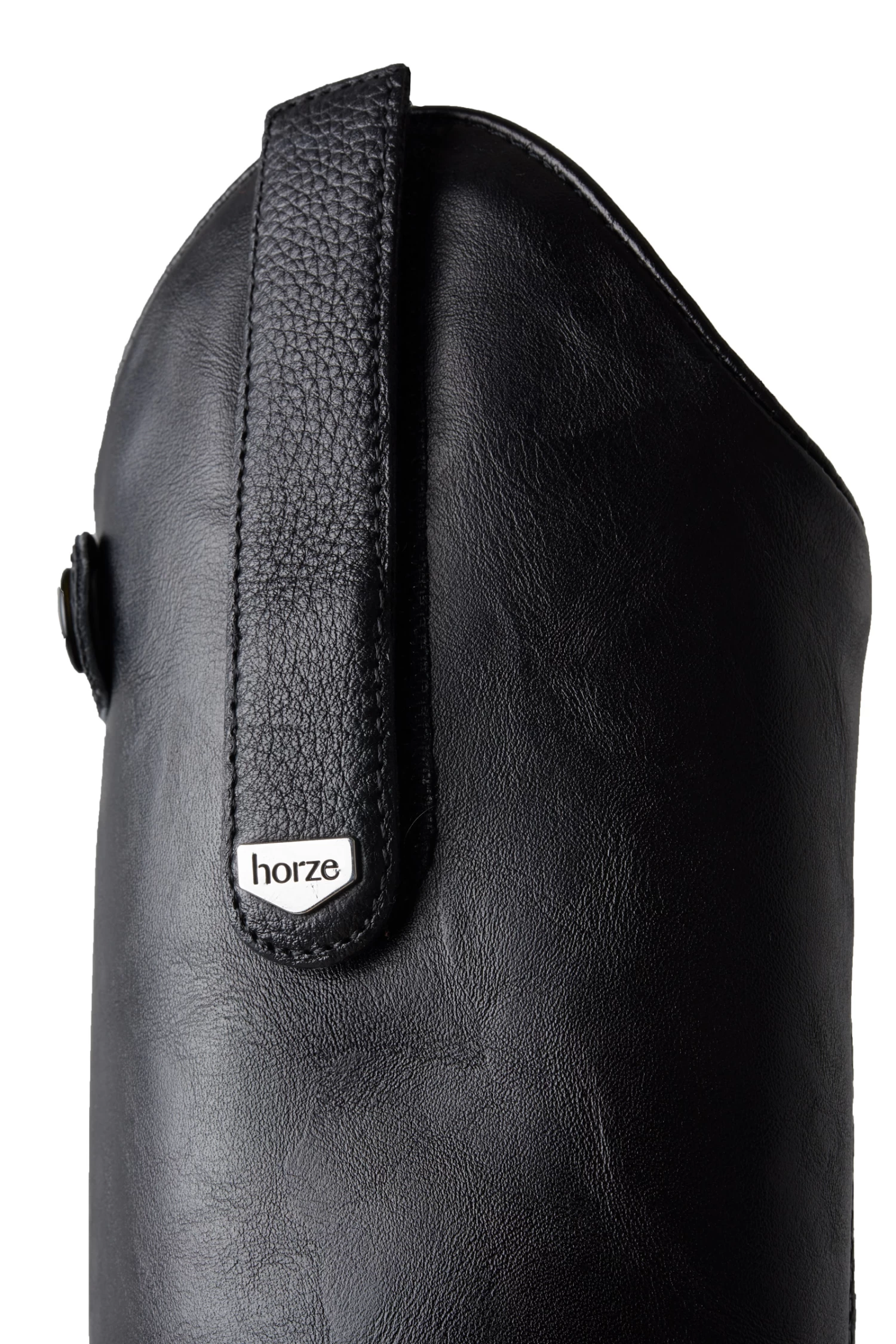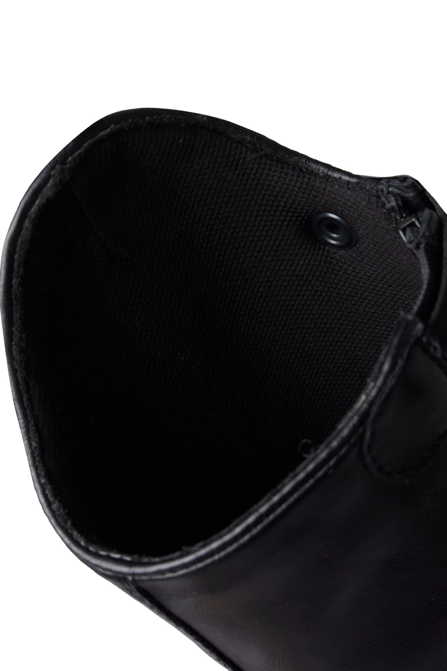 These vegan leather boots with exchangeable boot tab bring two different looks to your stable outfit. One plain & one faux croco version are included. Stitch decorations at the toe cap top of the elegant look. For a perfect fit the Sacramento Tall Boots feature an elastic insert along the back zipper.