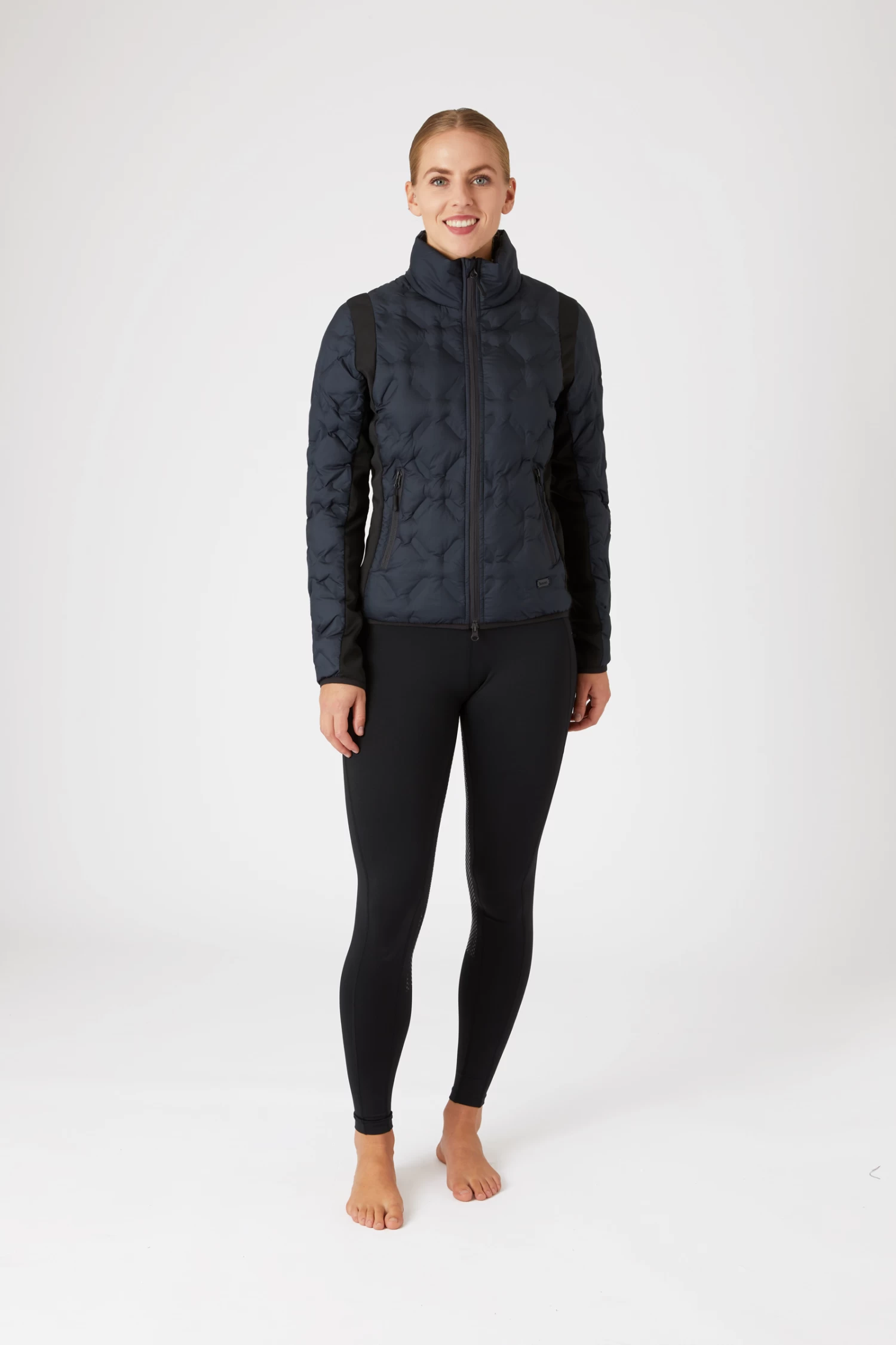 The Horze Shelly light padded jacket provides lightweight quilting combined with stretch side panels to offer ultimate comfort. This jacket is perfect to pair with jeans for casual wear or with your favorite breeches for a nice fall look. The fabric is water repellent and breathable and the length is perfect in the saddle.