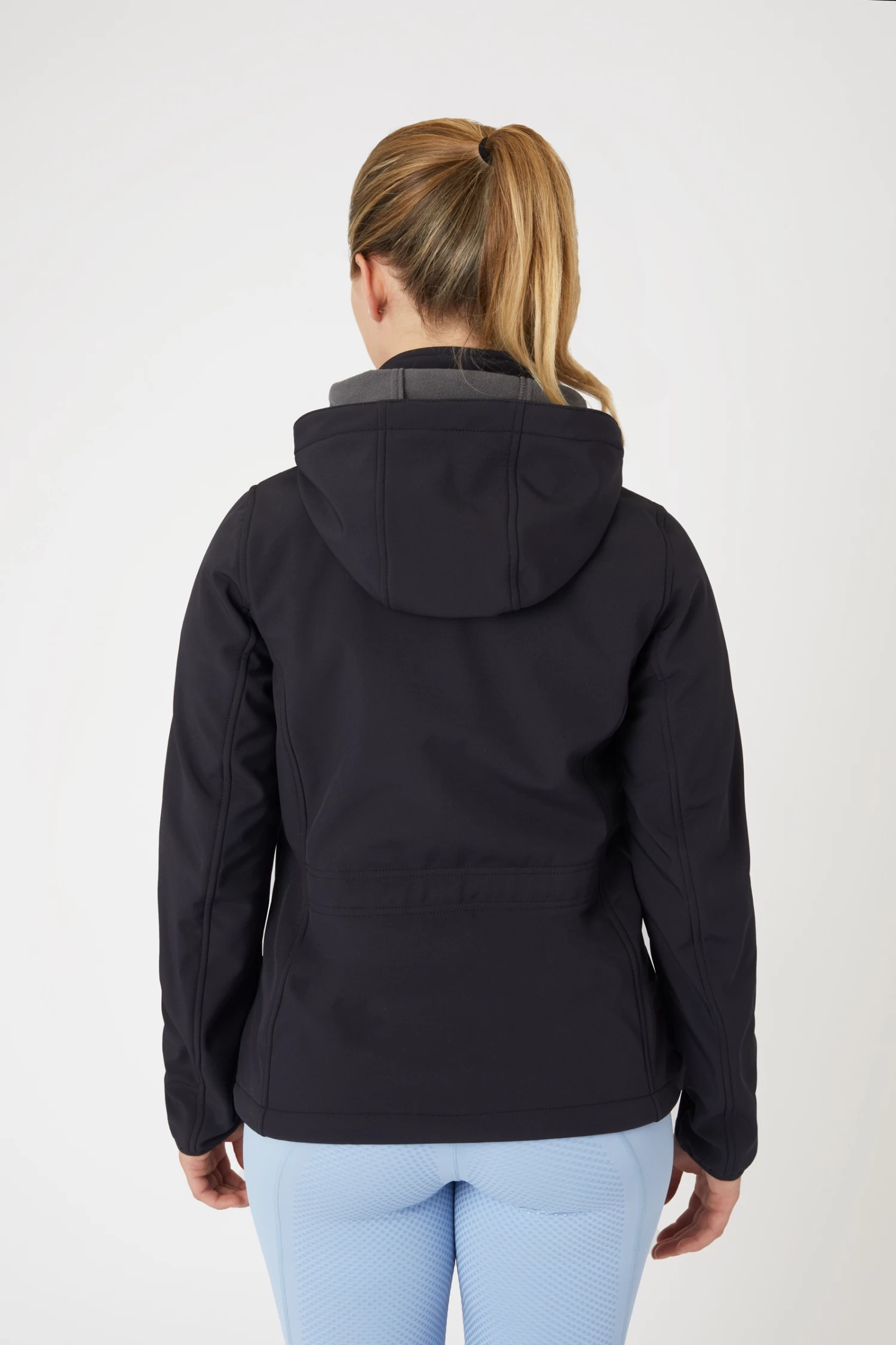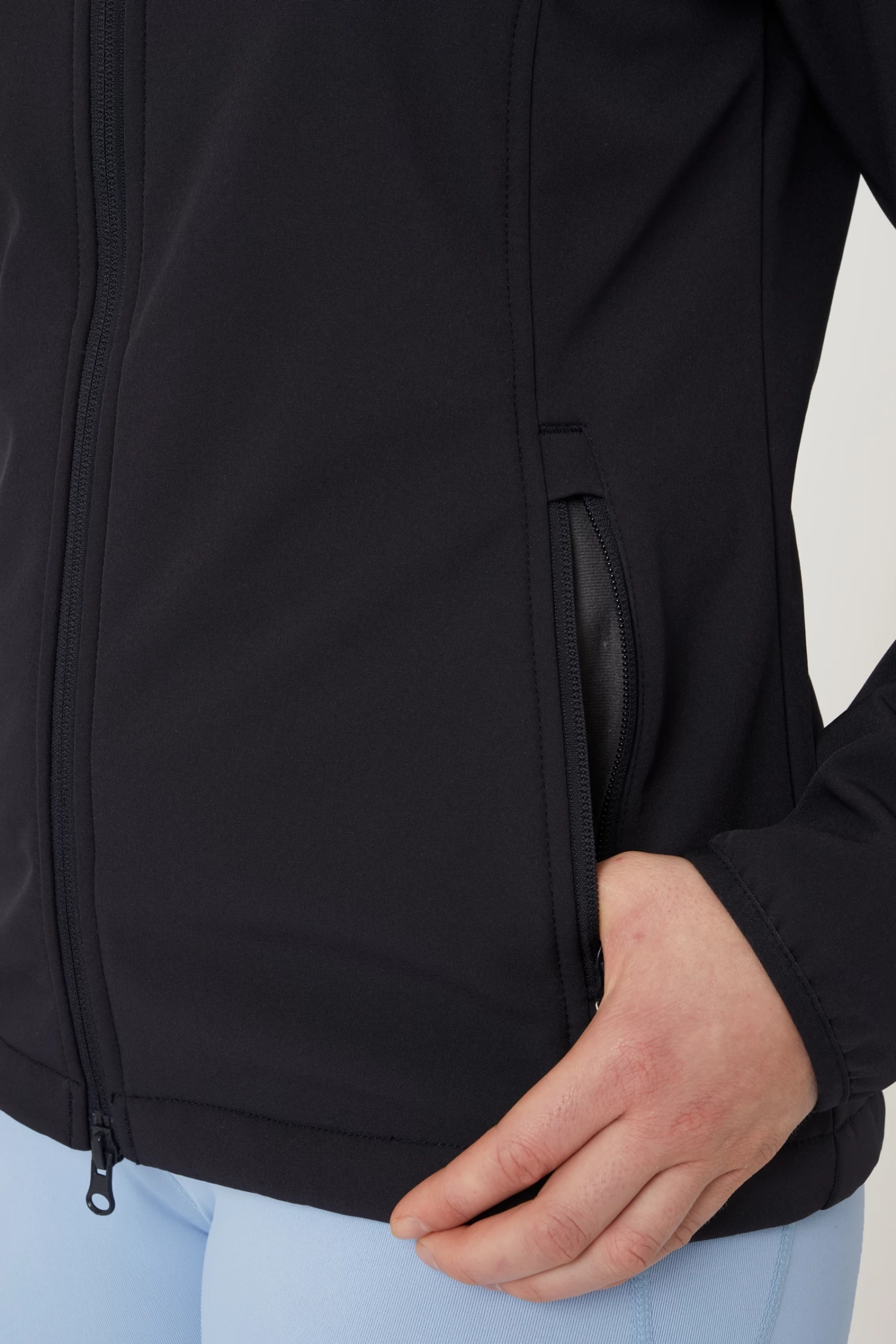 This functional women’s softshell jacket with a soft fleece lining in contrasting colour is the perfect option for layering or warmer spring days. It’s also a comfortable companion during short rain showers, thanks to the waterproof fabric and the hood (which can also be detached with a zipper). The two-way front zip make the jacket perfectly suitable for rinding and the spacious zipper pocktes allow you to stow away keys or your phone while being at the stables. The drawstring inside the back waist panel creates a flattering figure if tightened.