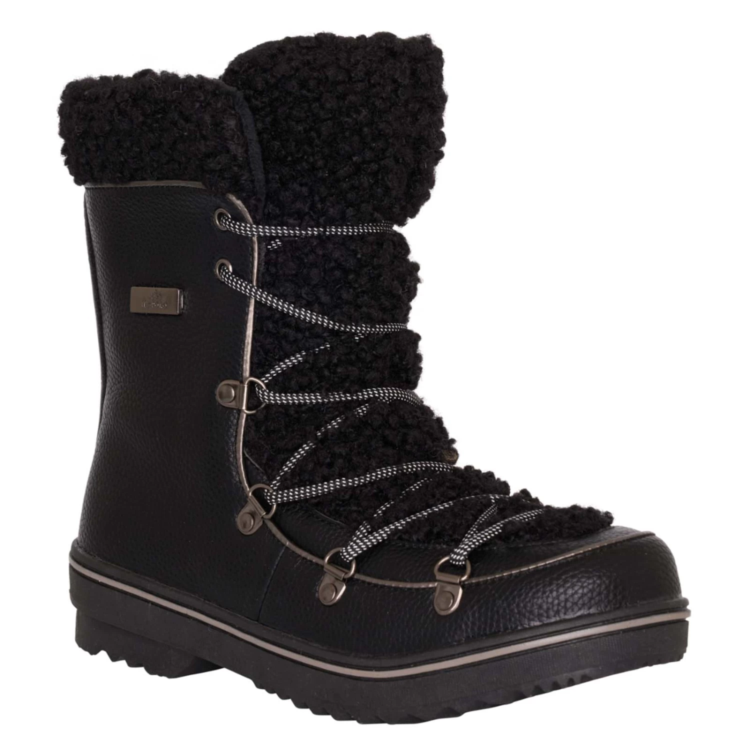 Winterboots with warm fleece inside and Sherpa details on the top and tongue of the boot. With metal logo plate.