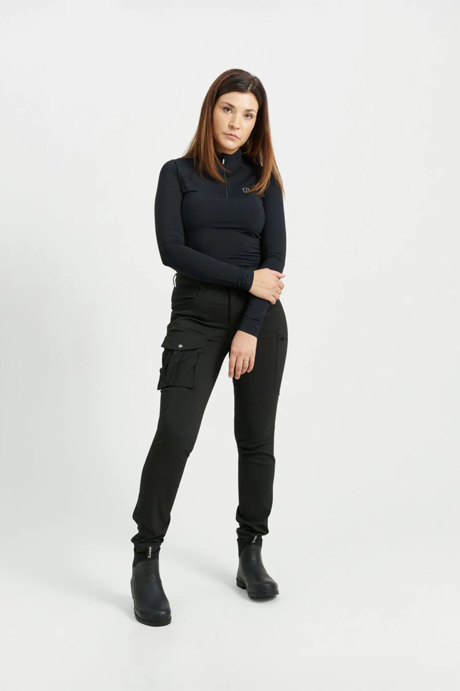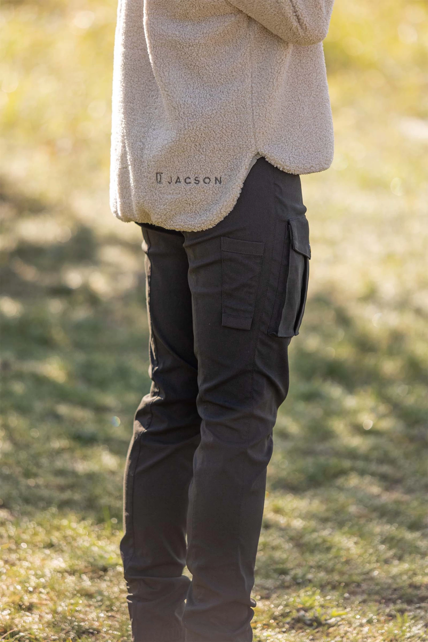 Stable Pants in highly comfortable and stretchable fabric. Higher waist and slim ancles, perfect fit for stable work. No inner leg seam, avoids chafing and comfortable when riding. Two open hand pockets. Three leg pockets. OEKO-TEX® certified fabric.
