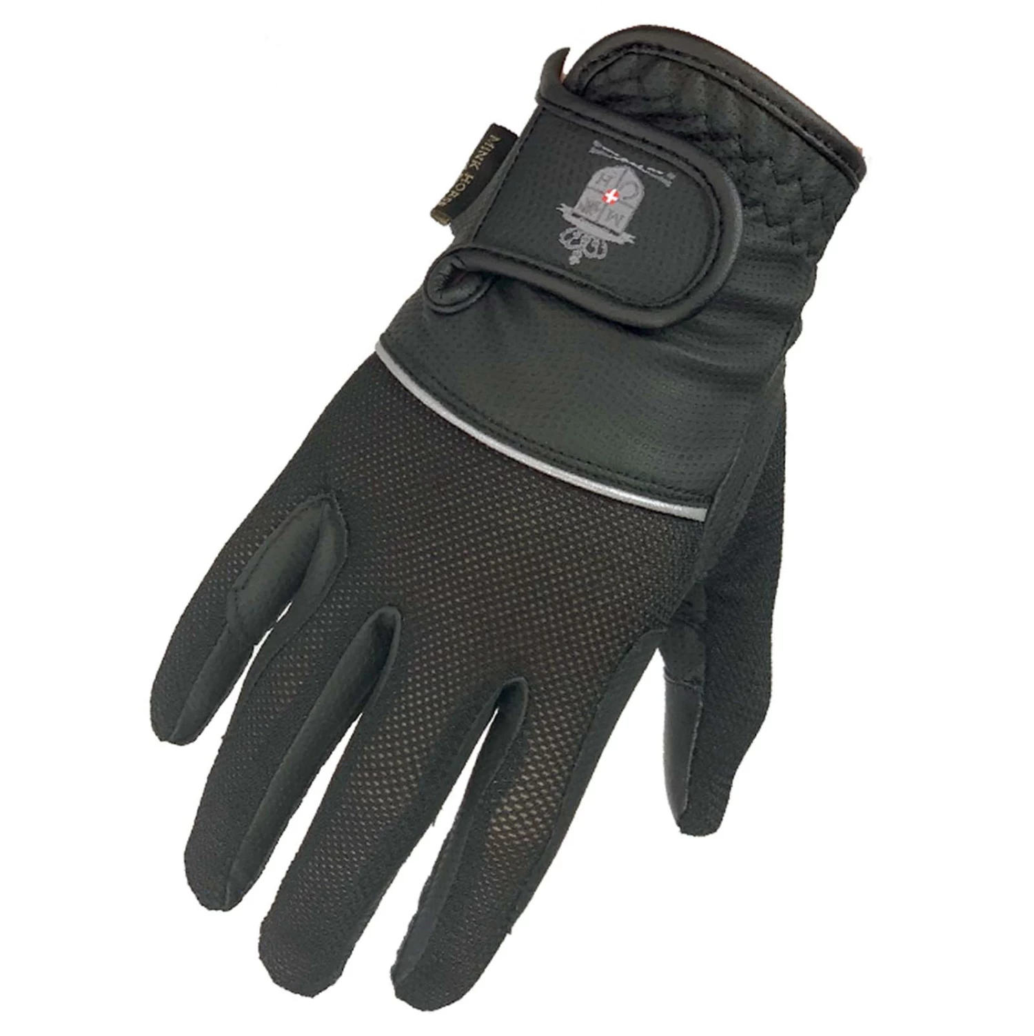 Light and comfortable riding glove in a durable and anti-slip digital Serino for improved a grip, combined with a light, dense and extremely breathable mesh material over the back of the hand. With reinforcements in the rein-area and great flexibility due to elastic cuffs and adjustable fastening strap with hook and loop closure. Reflective stipe over the back of the hand and a smart and decorative logo on the fastening strap. The gloves are touch screen compatible.