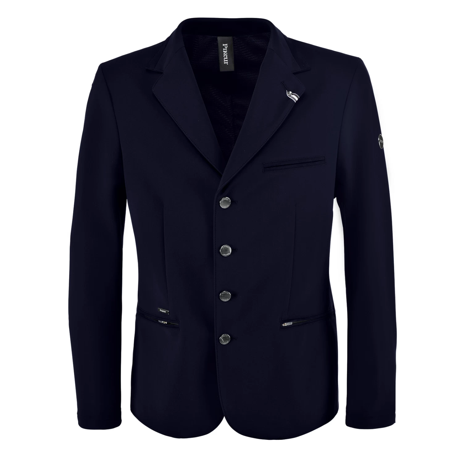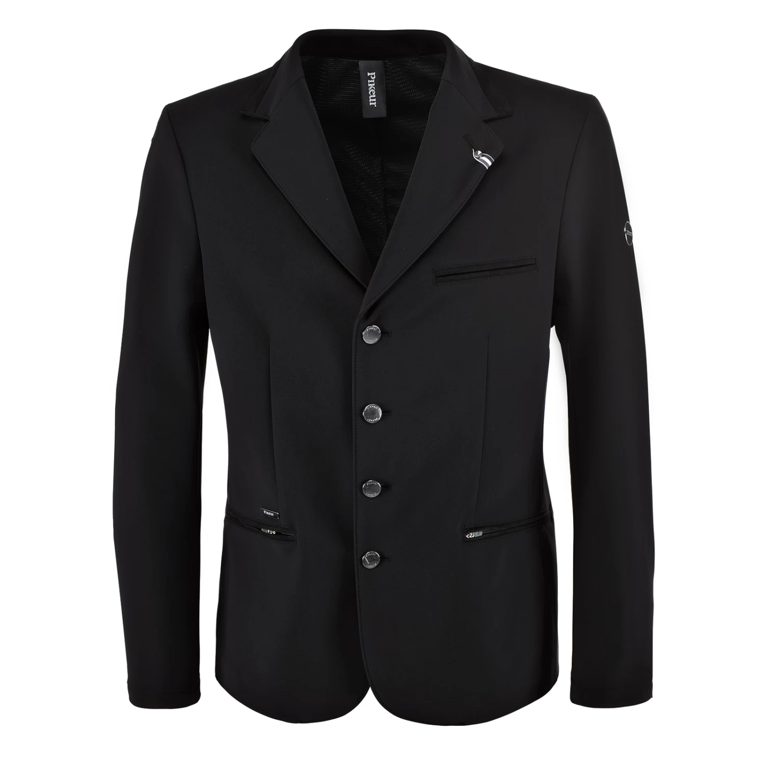 - Zip with McCrown double piping, McCrown double piping repeated at chest pockett