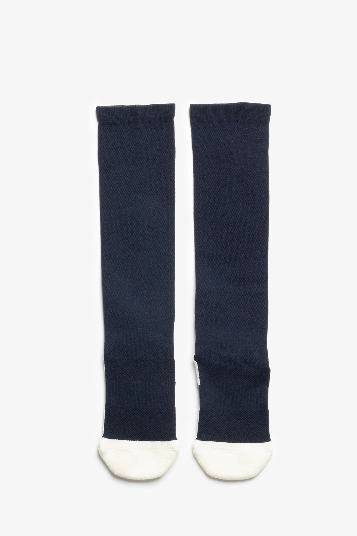High performance knee-high riding socks in a soft compression pique stitch. Padded comfortable toe and heel reinforcements, with a fine rib in between, and mesh insert at mid-foot. The compression together with the padded fabric on the foot ensures a perfect and supported fit, and the material keeps your feet fresh all day long. Comes in a pack of 2.