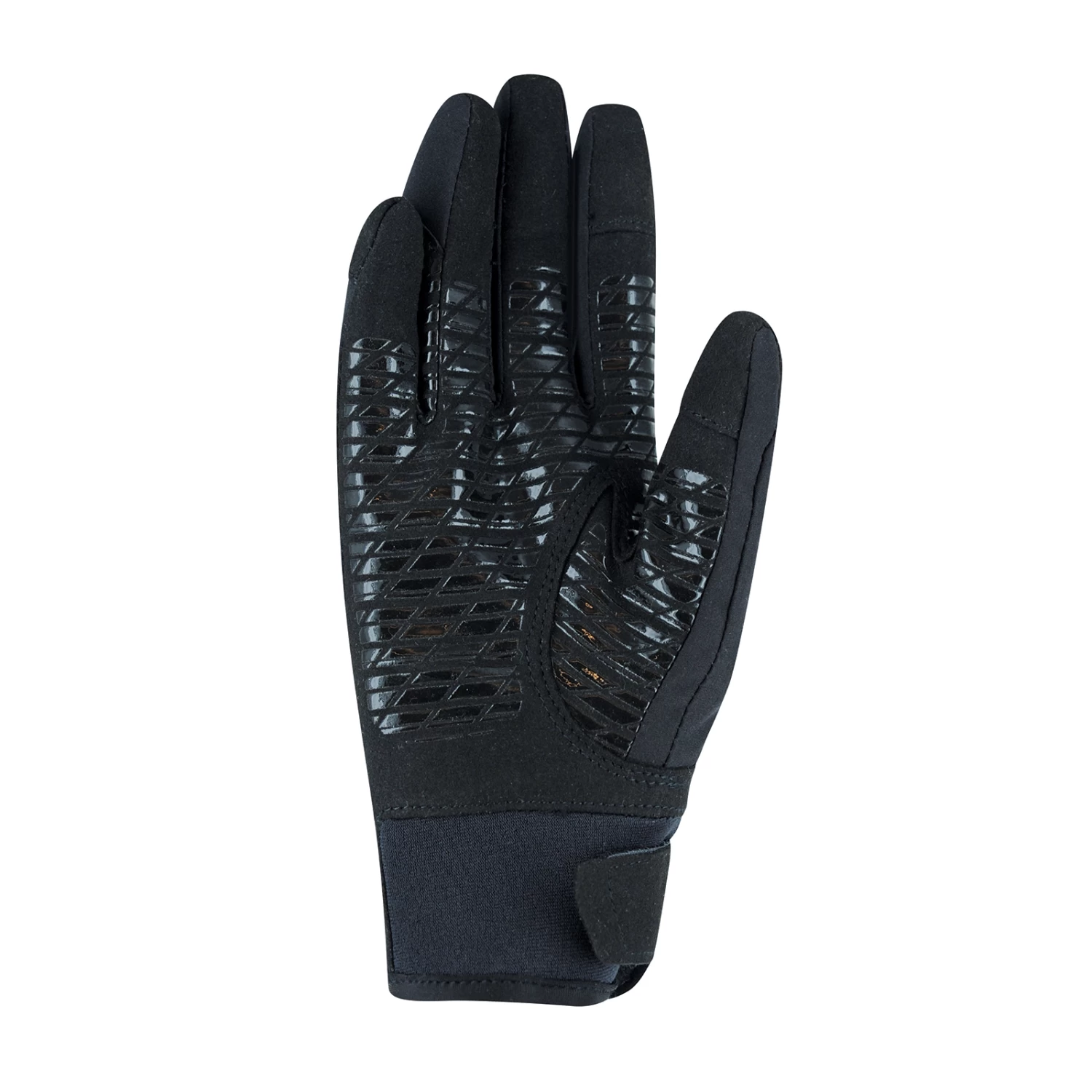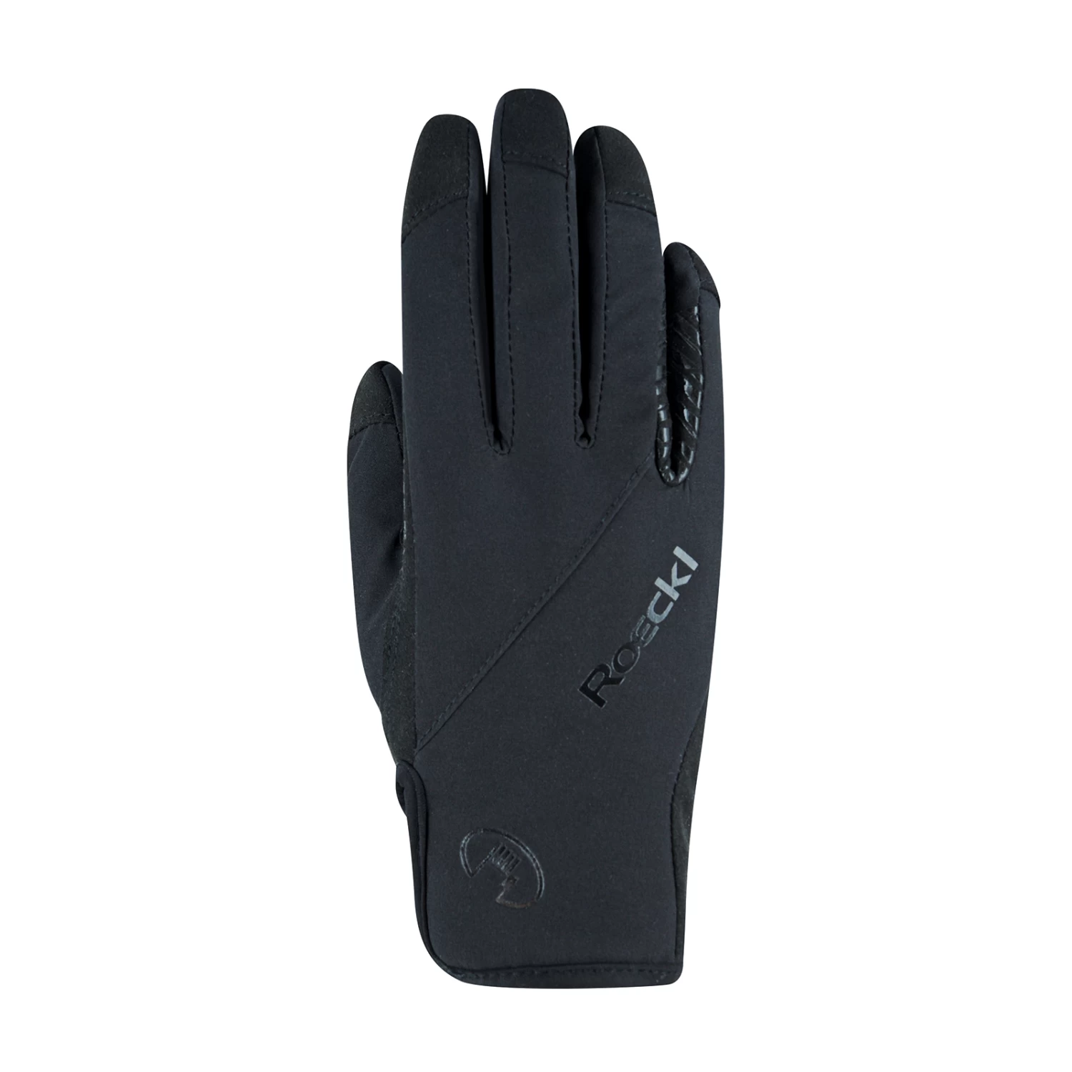 The WALK winter riding glove from ROECKL SPORTS is a masterpiece in terms of robustness and versatility and at the same time impresses with a sporty, elegant design that goes with any riding outfit. Thanks to hard-wearing materials that smoothly follow every movement on and around the horse, it is just as perfect for work in the stable as it is for lunging, walking the horse, loading training or ground work – and of course for enjoyable rides through the winter landscape. Elastic Dize Flex polyester on the backhand combined with the elaborate RAIL FINGER CUT – anatomically cut, pre-curved fingers where the material has been pulled over the fingertips for even greater protection against abrasion and wear – ensures a very good fit. The proven synthetic suede DURADERO is used on the palm. It is particularly robust, but at the same time pleasantly elastic, and thus offers optimum support when handling rope, cord and lunge. It also remains pleasantly soft even in cold weather and thus offers the necessary sensitivity on the reins. For a reliable, non-slip grip, the palm is generously equipped with SILICONE-GRIP. An extra portion of warmth is provided by a roughened lining and the neoprene cuff with hook-and-loop fastener fixes the glove securely to the wrist. Practical and clever: Thanks to TOUCHSCREEN COMPATIBLE function, the WALK can simply stay on for typing on the smartphone.