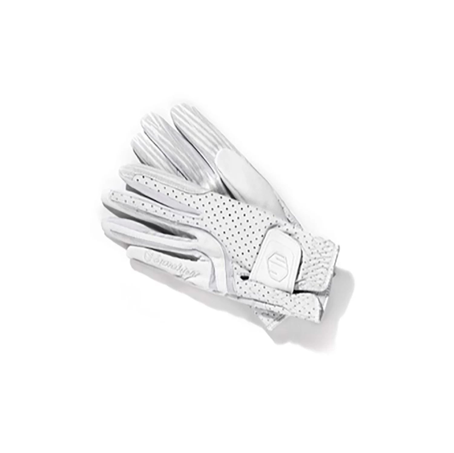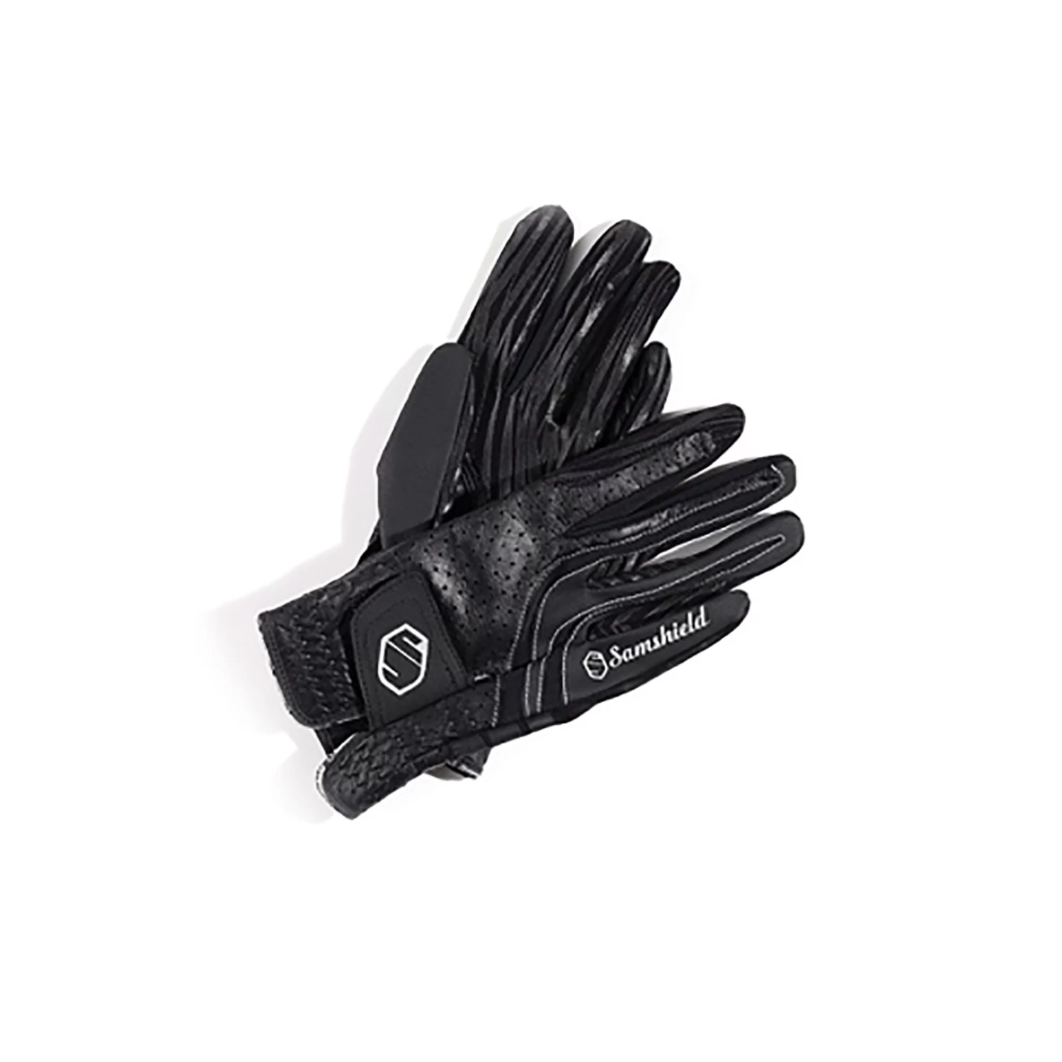 To create the V-Skin gloves Samshield has followed the same strategy as when they created the successful Premium helmet:• Analyze existing product on the market• Make a large survey with plenty of riders before to start the designAll riders answered that they would like improvement regarding durability, breathability, grip, flexibility, thinness, design.The mission was to create a glove that would answer to these requirements.The V-Skin gloves are made of four different materials placed at the smartest position in order to give the best answer to exigent riders:• Ultra thin perforated synthetic leather: offers maximum comfort, airflow, lightweight and resistance and machine washable (30°C) • Strong Suede fabric base fingerprinted with real silicone:offers exceptional added grip, hand-to-horse connection, flexibility as well as extreme durability • Strong version of Lycra: offers extreme flexibility for a high end comfort and constant fitting • Spandex size is doubled in order to always get a perfect fitting with the wrist.