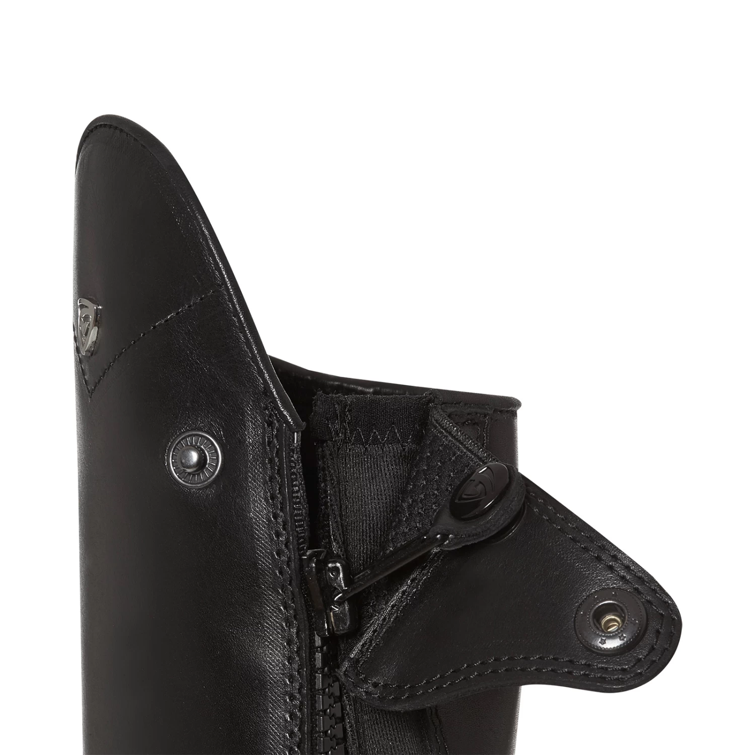 Thanks to the anatomical fit and the elastic inserts, the chaps fit perfectly to the leg and provide good support. The hard-wearing non-slip inside made of non-slip leather also allows a good grip on the horse. The high-quality smooth leather makes the chaps look elegant and sporty at the same time. A flap prevents the zip slider from sliding down and a press stud closes the zip.