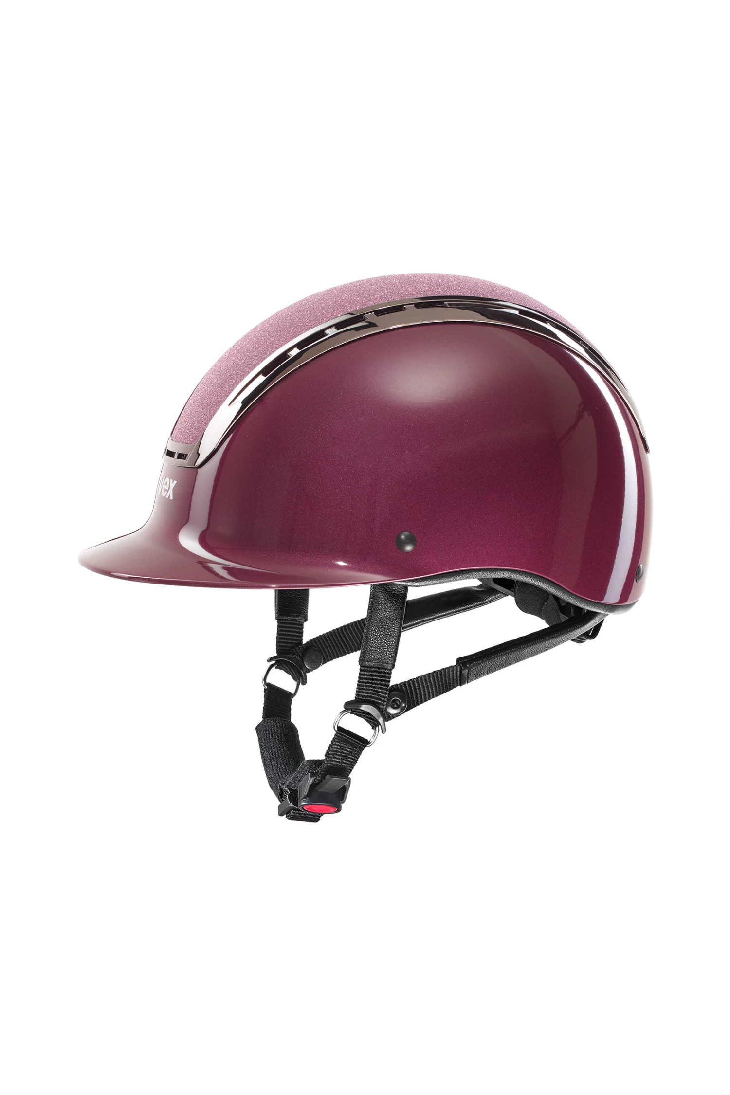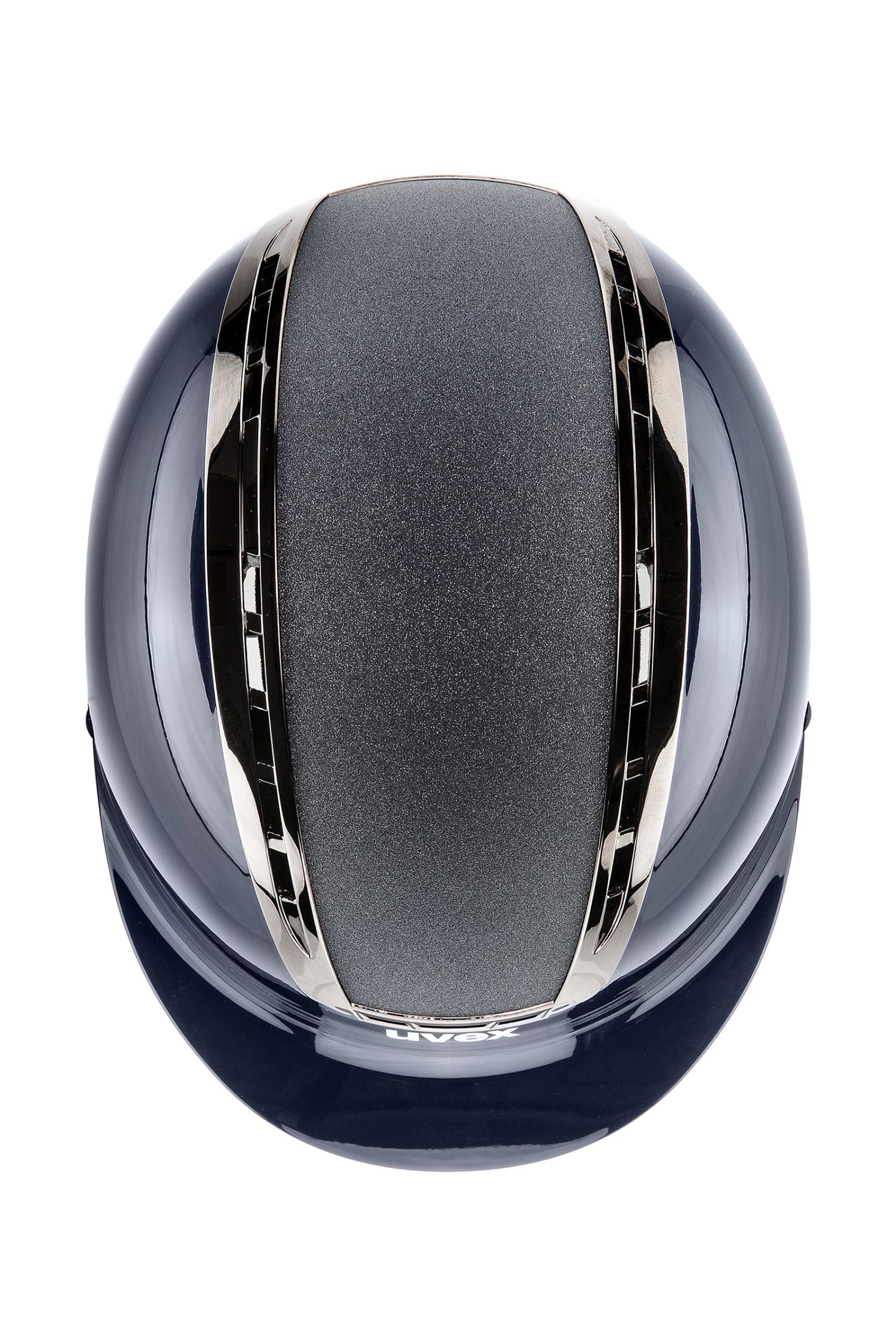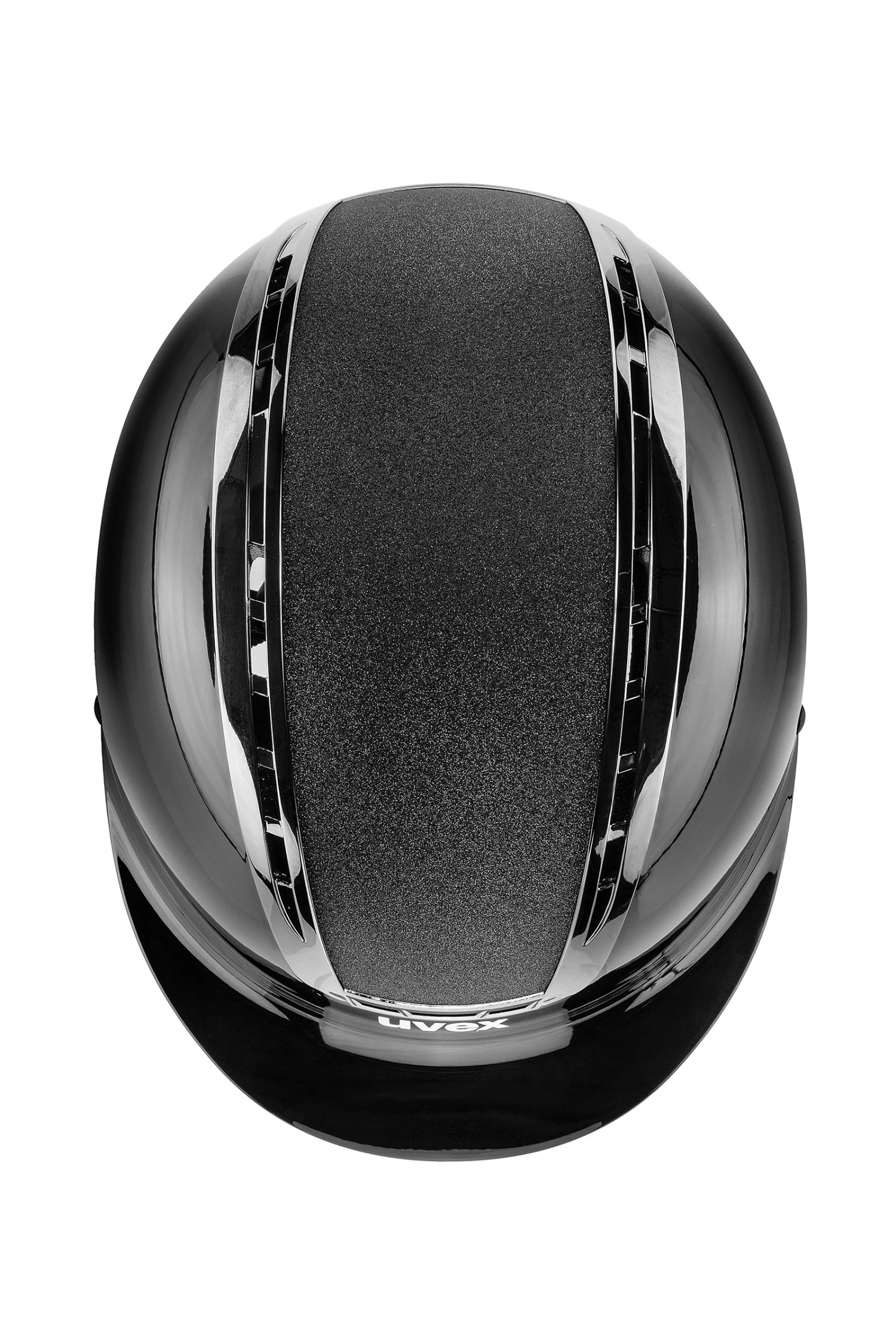 A true showpiece! The popular dressage helmet uvex suxxeed blaze impresses with a new design. Its shell in piano lacquer finish with shimmering glitter insert and metal frame in black chrome bid to out-sparkle each other. A true showpiece!
