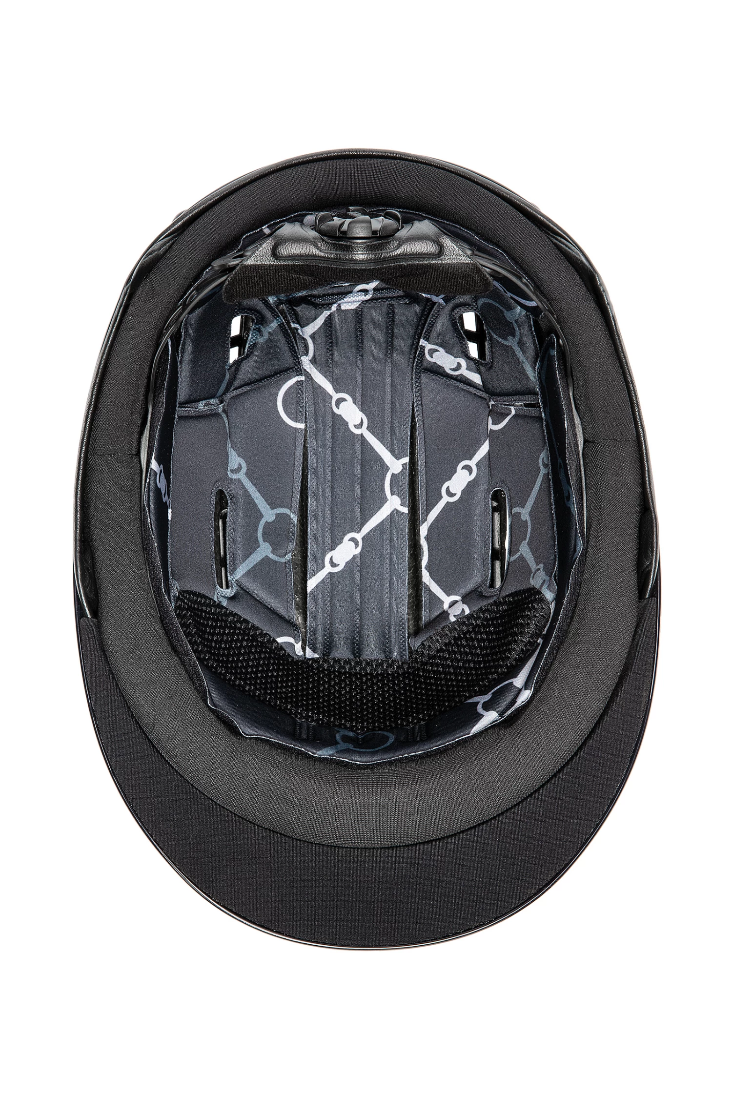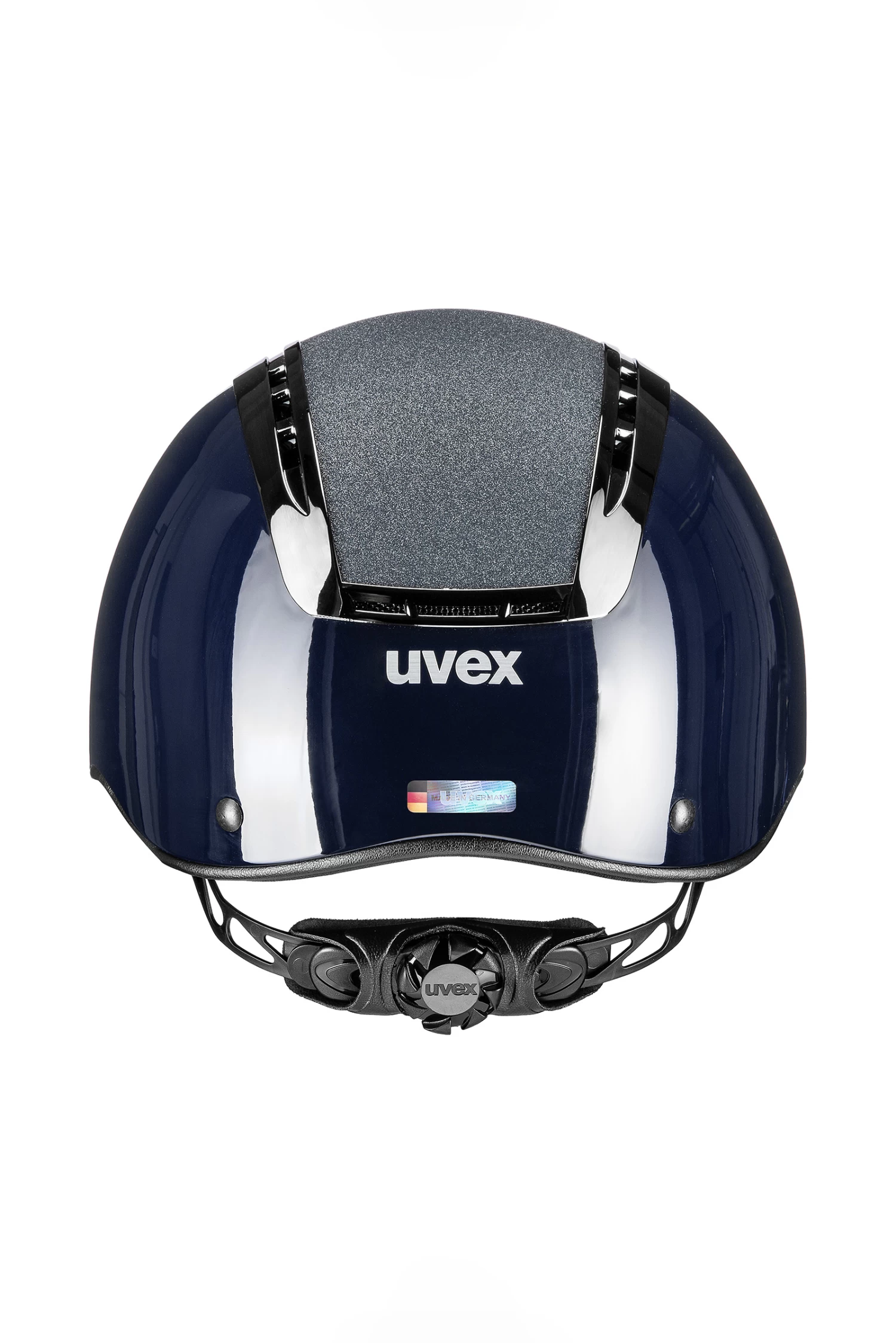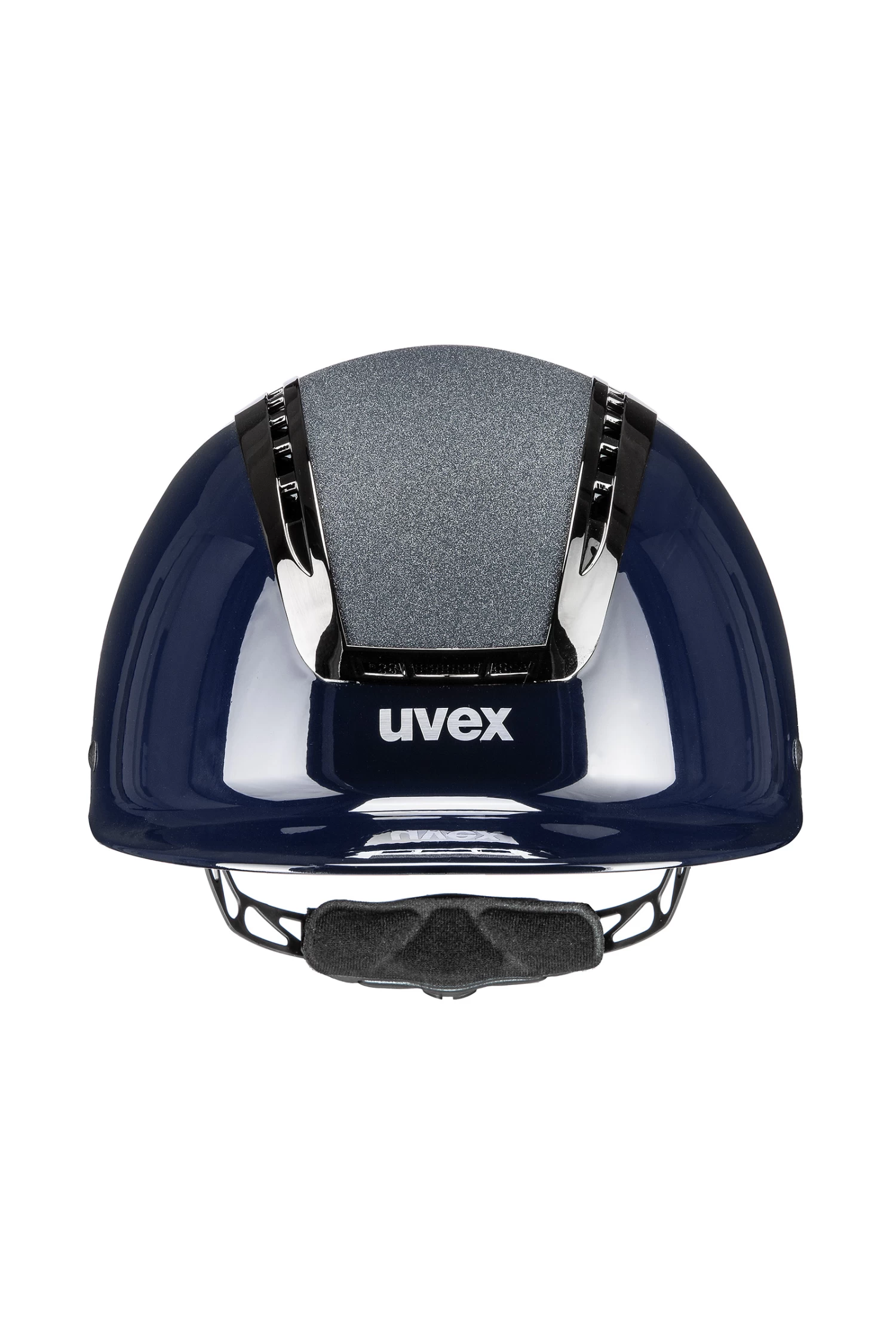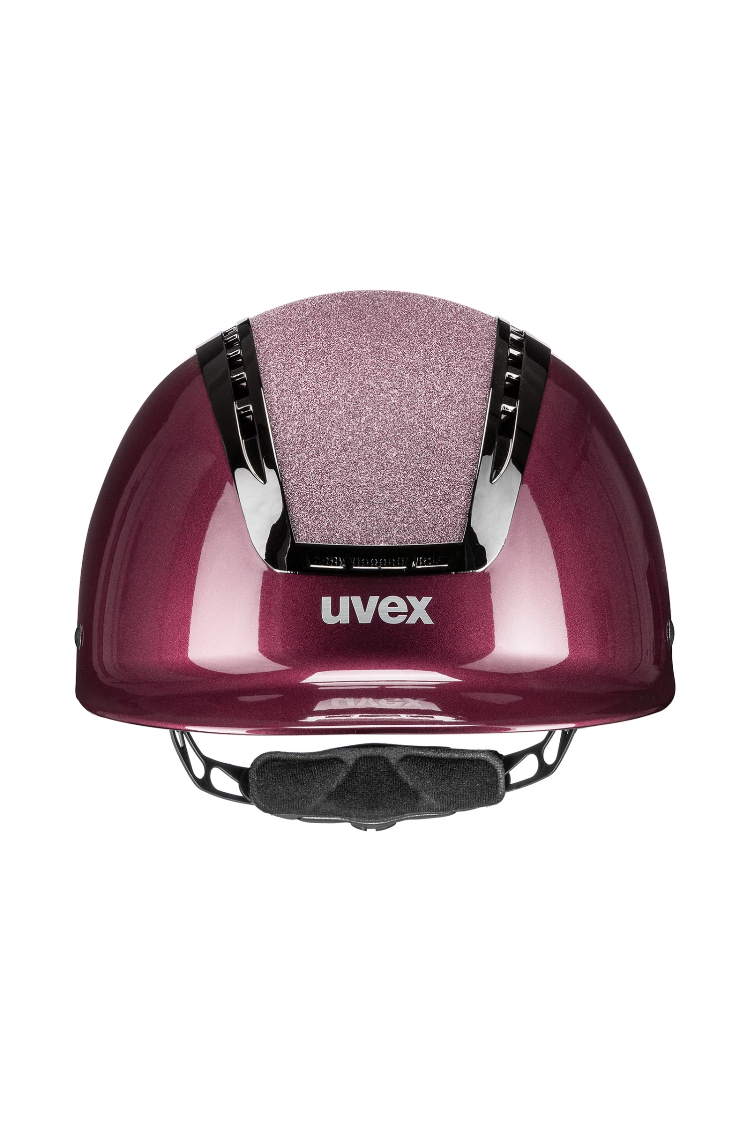 A true showpiece! The popular dressage helmet uvex suxxeed blaze impresses with a new design. Its shell in piano lacquer finish with shimmering glitter insert and metal frame in black chrome bid to out-sparkle each other. A true showpiece!