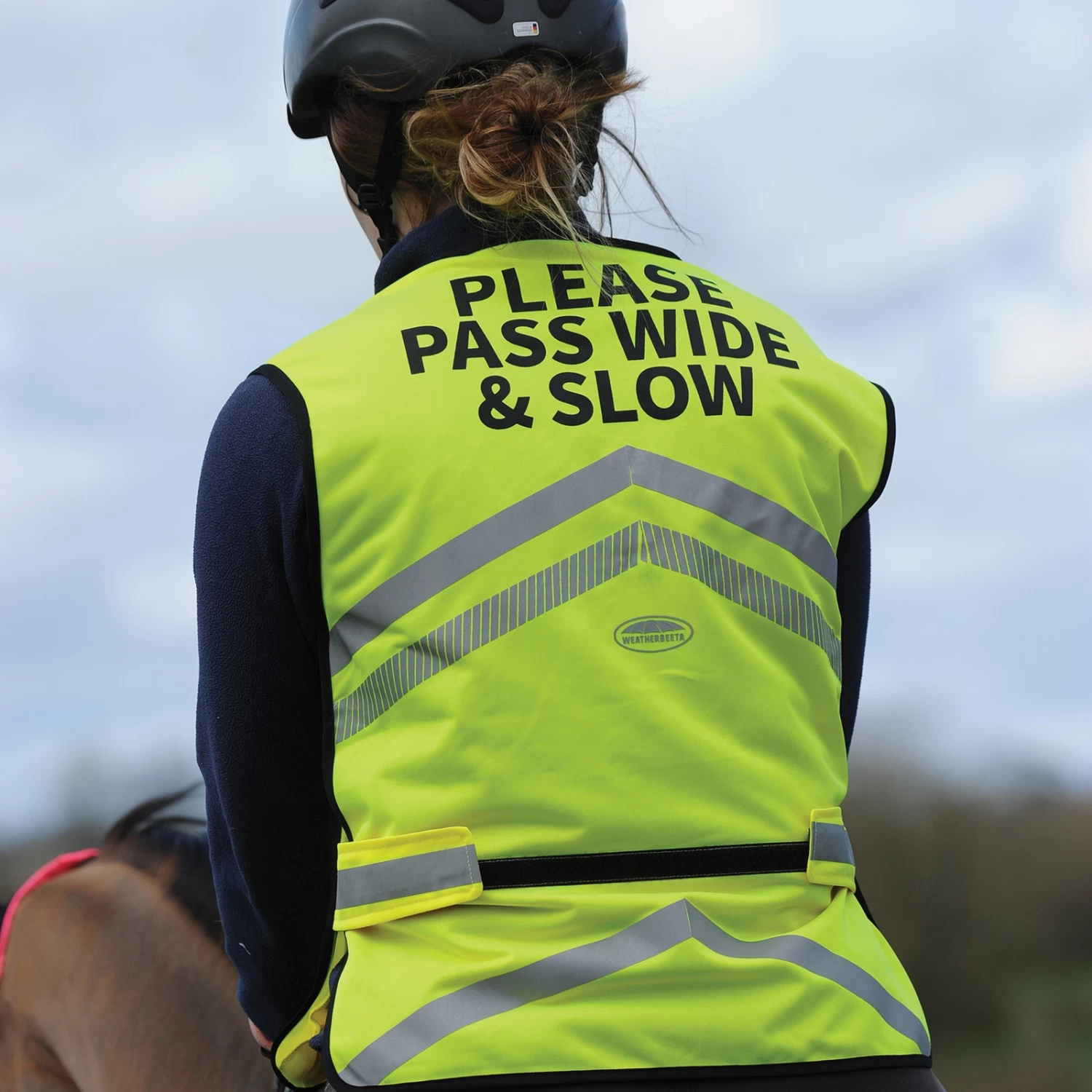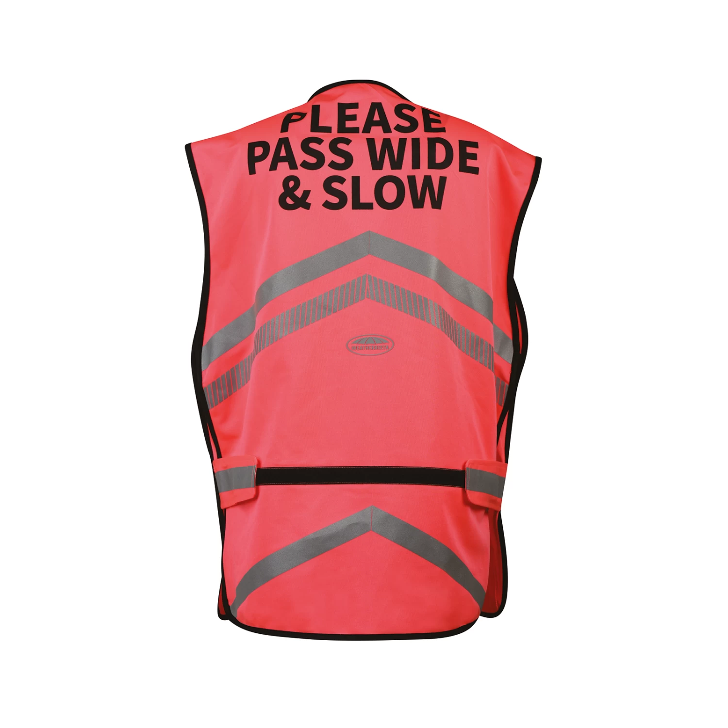 The WeatherBeeta Reflective Waistcoat features a centre front full zip with 2 hand zip pockets to fit your phone and other valuables. The elastic on the sides offer a flexi-fit for any body shape with hook-and-loop closures on back for easy adjustability. The stylish reflective tape design on front & back provide easy visibility. “Please Pass Wide and Slow” print on back.